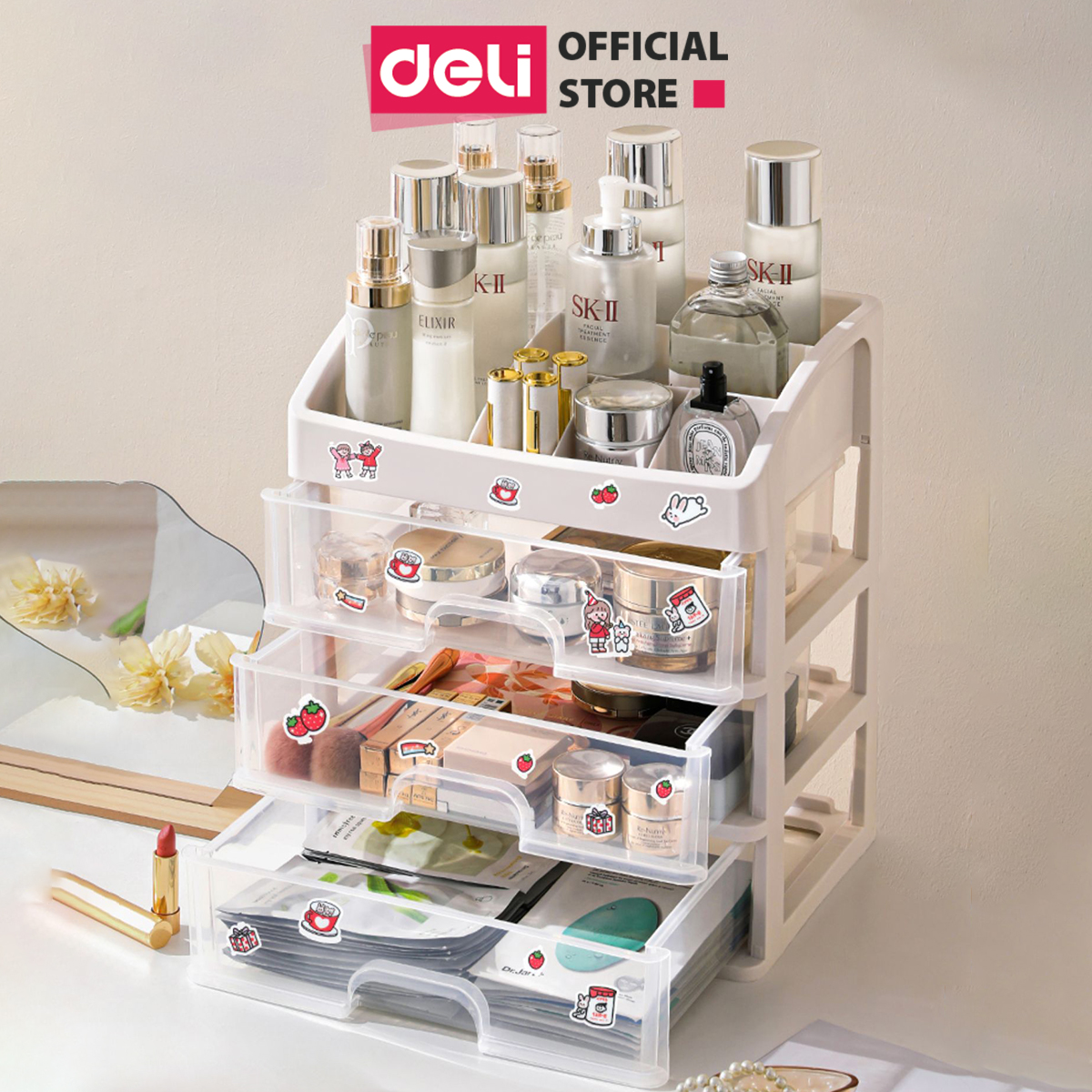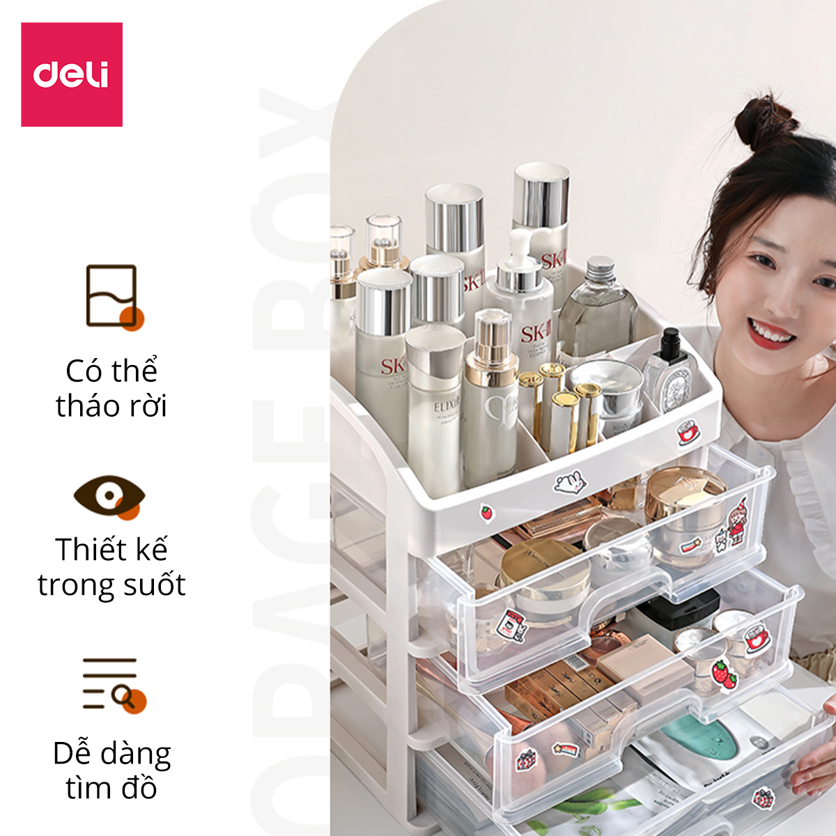 • Tên sản phẩm: Kệ đựng mỹ phẩm nhựa nhiều tầng để bàn trong suốt Deli kệ đưng đồ trang điểm hộp lưu trữ văn phòng phẩm