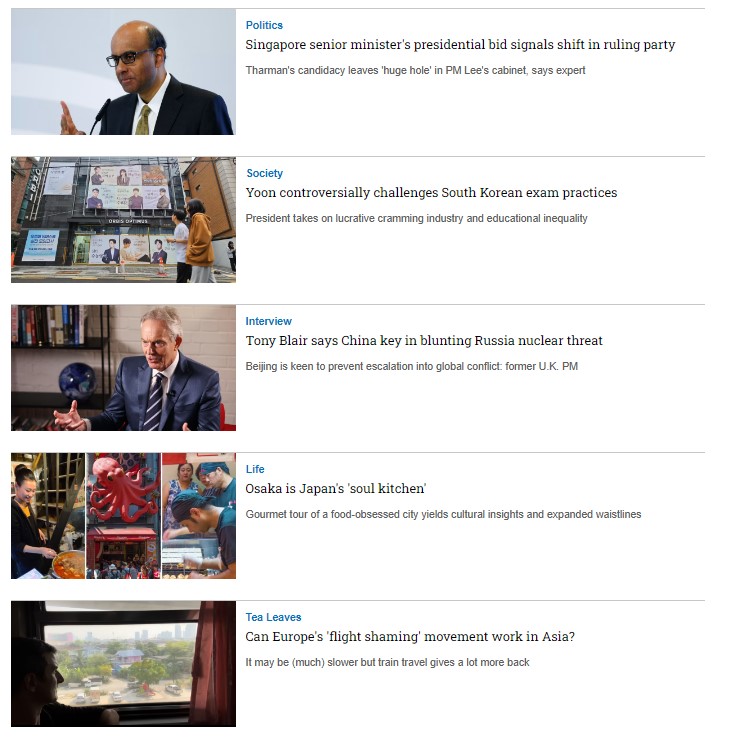 • Là thương hiệu truyền thông lớn và được kiểm duyệt nội dung hằng tuần với dạng thông tin chính thống, được thu thập từ các phóng viên uy tín trên toàn Châu Á, là nguồn trích xuất cho nhiều nhà báo tại Việt Nam.