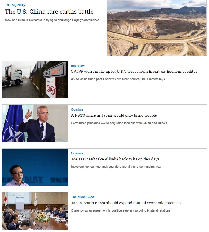 Nikkei Asia là tạp chí tiếng Anh có tên tuổi thuộc tập đoàn Nikkei - Nhật Bản, chuyên viết về những xu hướng kinh tế, công nghệ, chính trị của các nước trong khu vực
