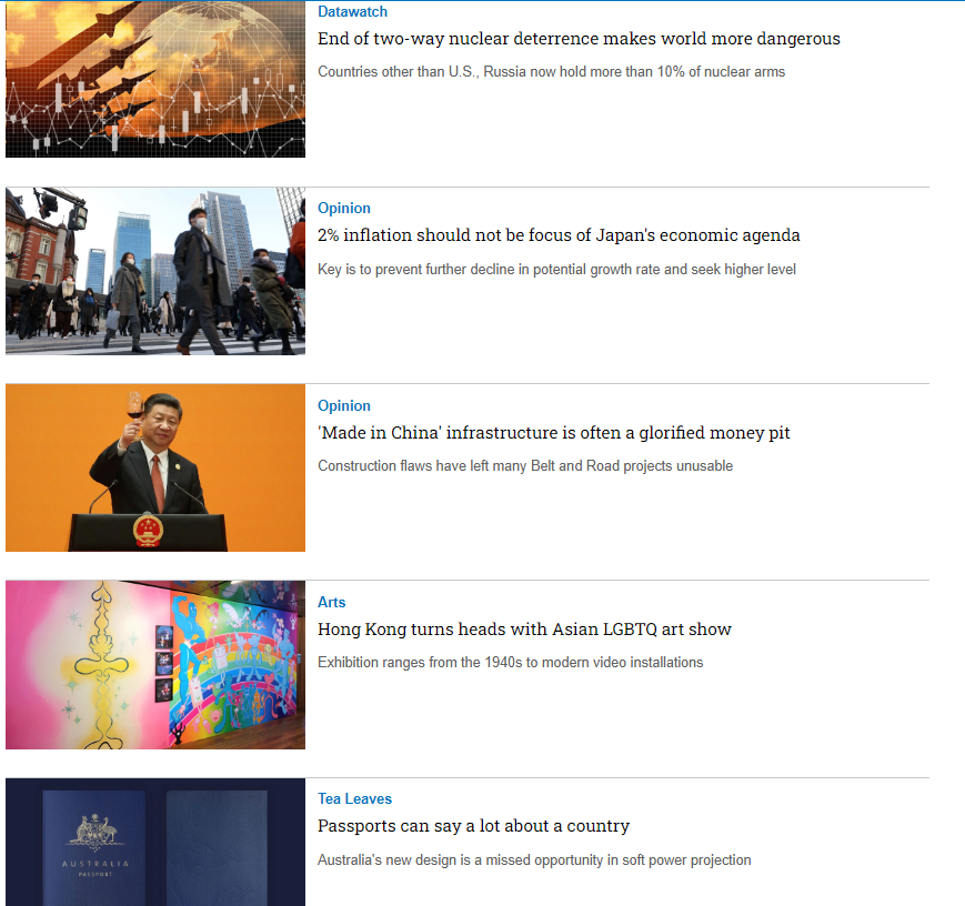 Nikkei Asia là tạp chí tiếng Anh có tên tuổi thuộc tập đoàn Nikkei - Nhật Bản, chuyên viết về những xu hướng kinh tế, công nghệ, chính trị của các nước trong khu vực châu Á - Thái Bình Dương gồm có Việt Nam. Ngoài ra còn cung cấp các phân tích từ chuyên gia, nhà báo về đời sống và văn hóa các nước châu Á. (Trending, Business, Markets,Tech, Politics, Economy, Features, Opinion, Life & Arts).