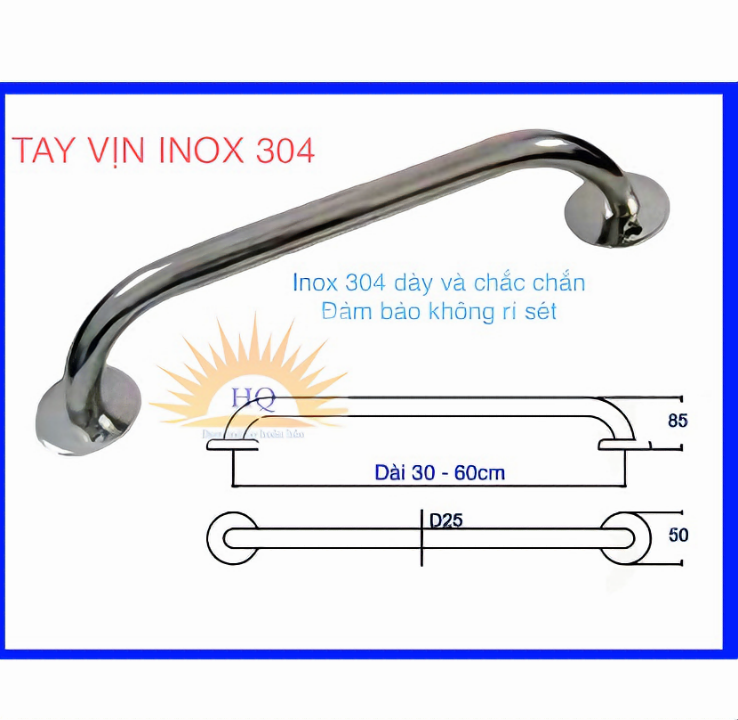 dễ dàng lắp đặt sản phẩm rất cần thiết cho người già và người khuyết tật. sản phẩm làm từ inox 304 không gỉ nên chống oxi hóa rất tốt. chất liệu : inox 304