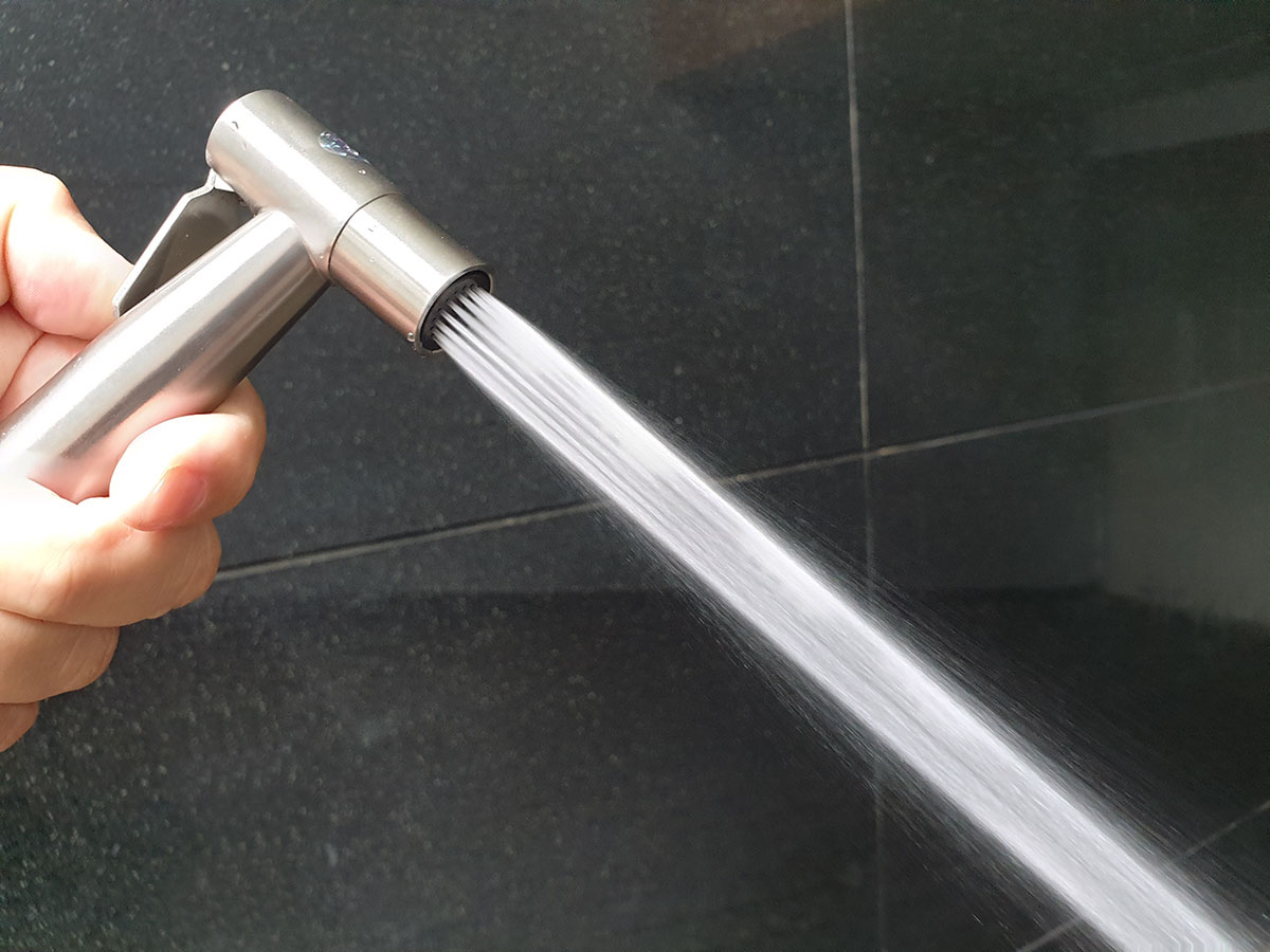 Tay xịt được sản xuất với chất liệu Inox SUS 304 không han rỉ, không dính kết vết bẩn. Vật liệu đạt tiêu chuẩn chất lượng Châu Âu, không bong tróc lớp xi mạ theo thời gian.