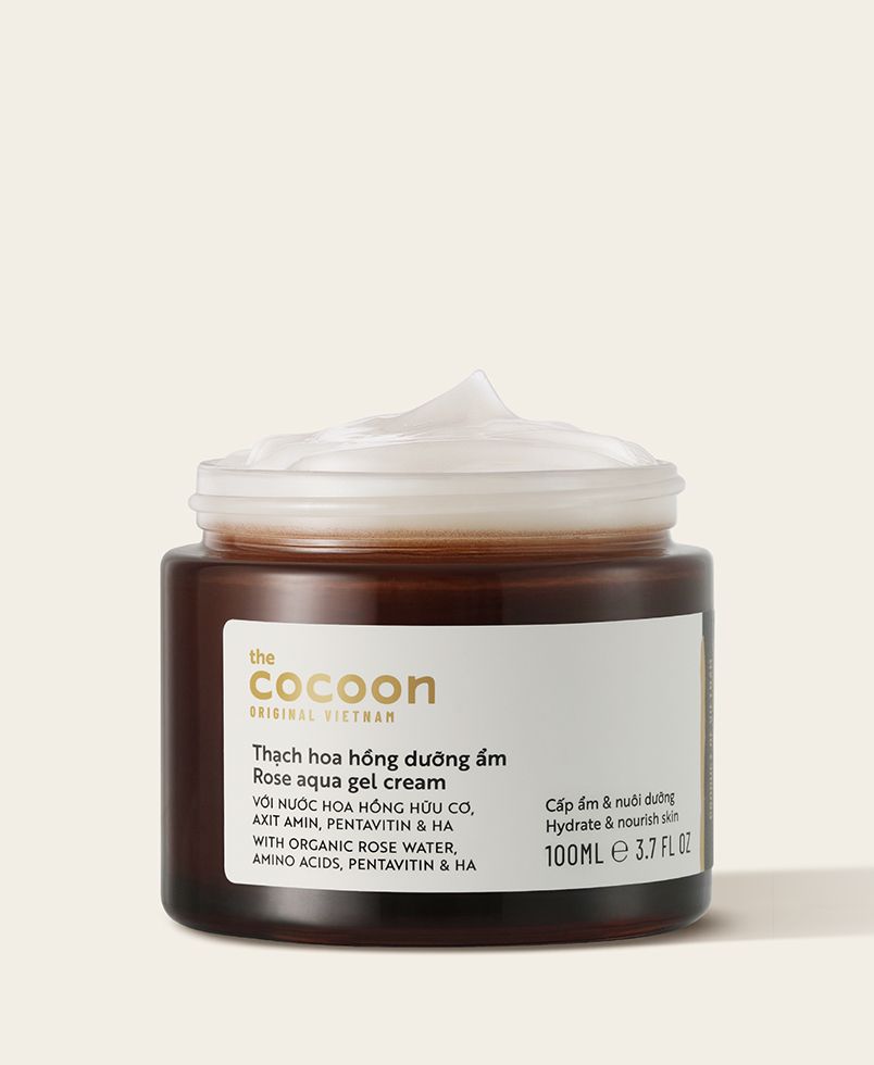 - Cải thiện và duy trì hàng rào bảo vệ da khỏi tác nhân từ môi trường và thời tiết Thành phần chính thạch hoa hồng dưỡng ẩm Cocoon 100ml