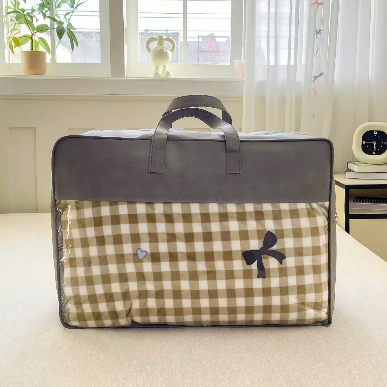 Chất liệu nỉ lông thỏ mềm, nhẹ, gọn gàng và giữ ấm siêu tốt, set đi kèm chăn tiện lợi với size rộng rãi 2mx2m3, nặng ~2.3kg thoải mái cho cả gia đình.