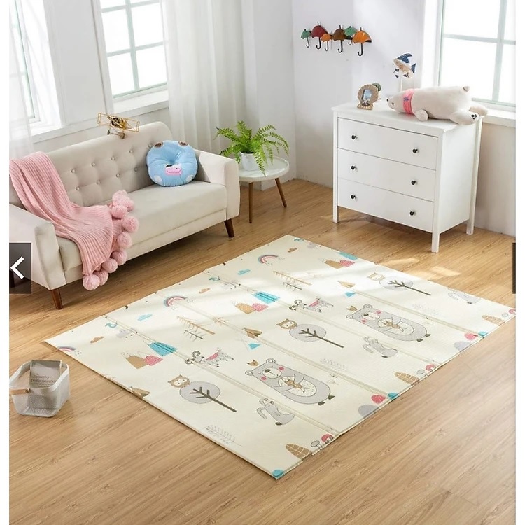 Thảm Xốp Gấp Gọn Chống Thấm, Thảm XPE 2 Mặt Phủ Silicon Chống Trơn, Chống Ngã, Cho Bé Tập Bò Kèm Túi