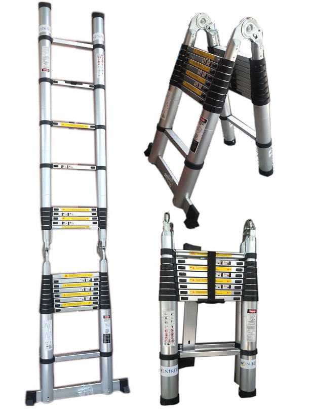 Thang nhôm rút NIKITA: có thể được điều chỉnh chiều cao một cách linh hoạt, phù hợp với nhiều nhu cầu sử dụng khác nhau. Chiều cao thang có thể lên tới 6m, đáp ứng được các công việc đòi hỏi độ cao lớn.