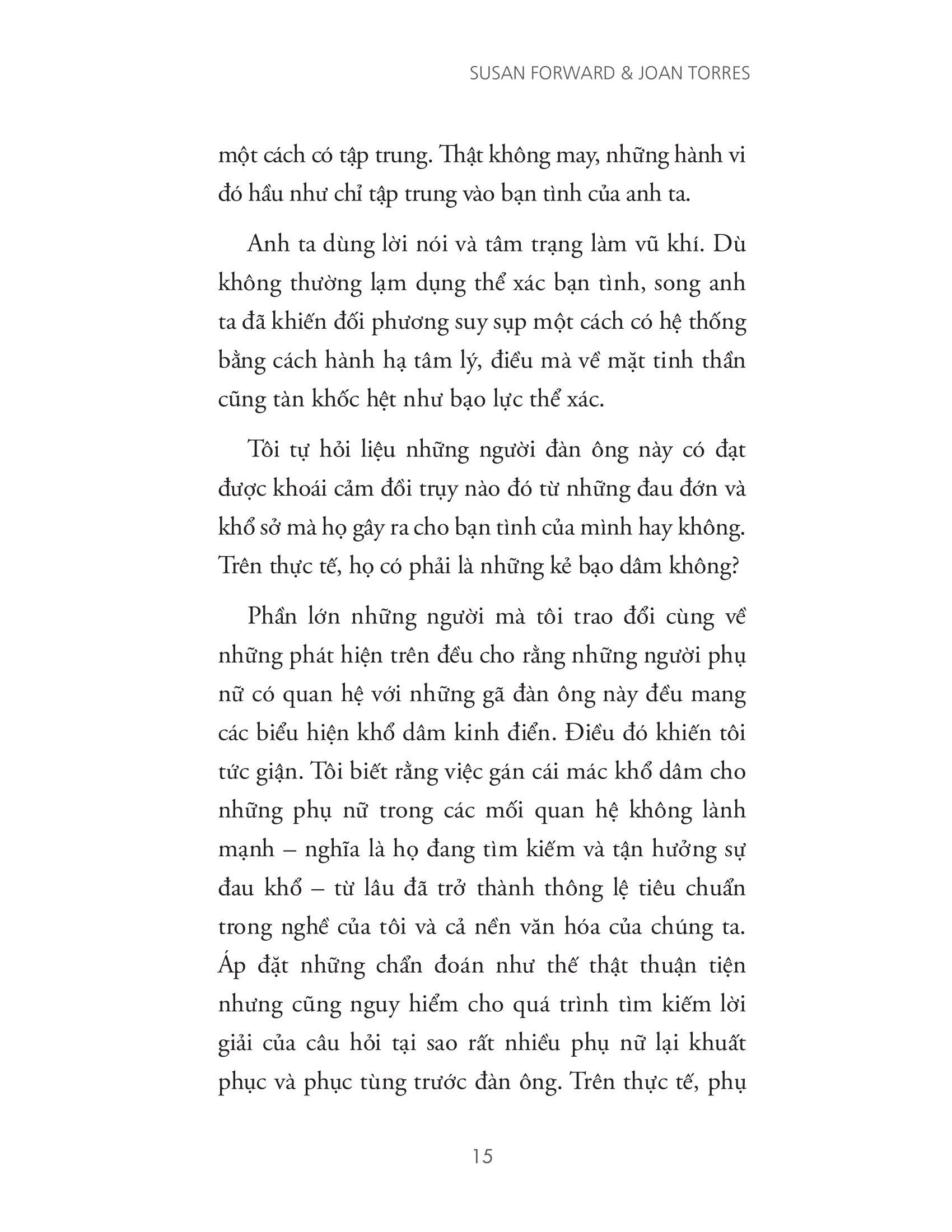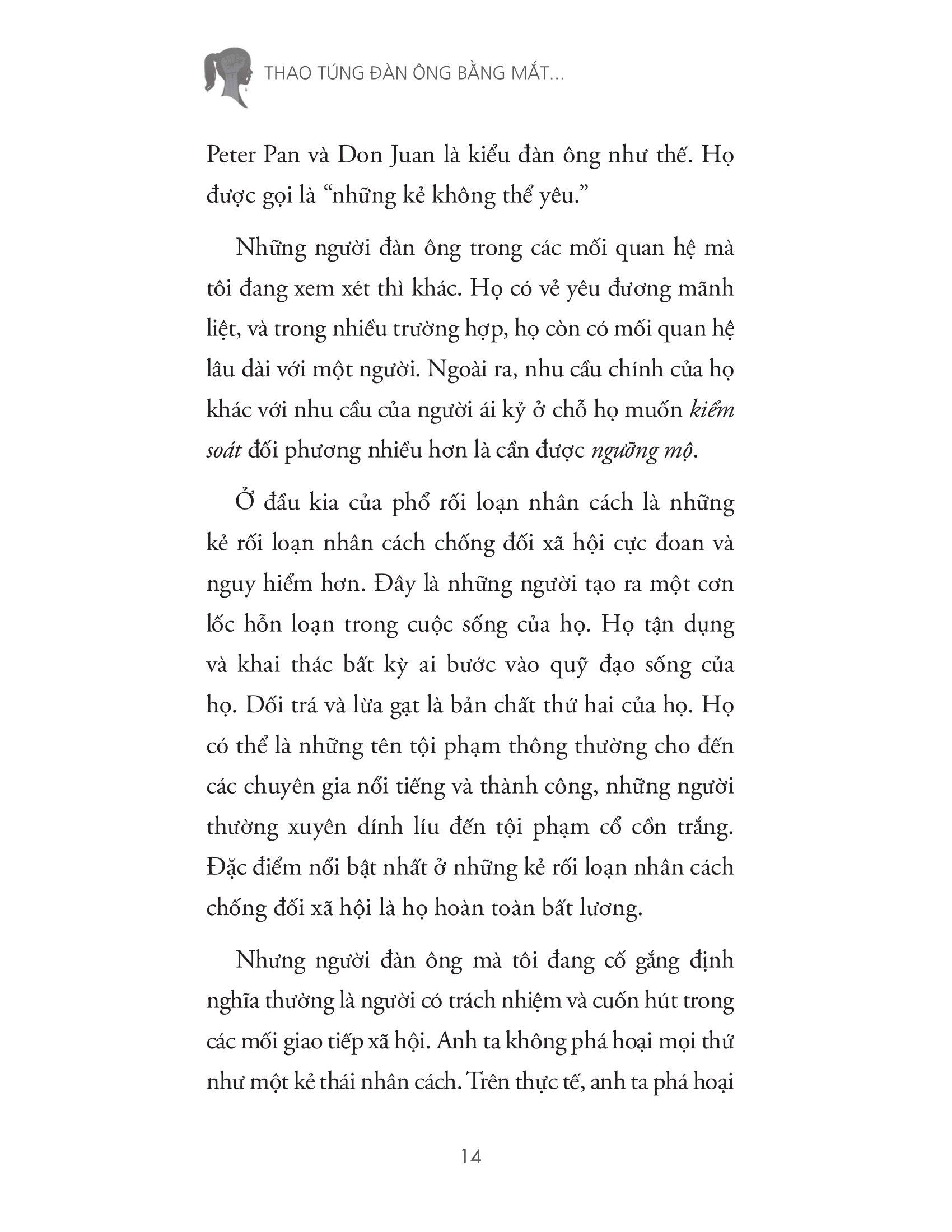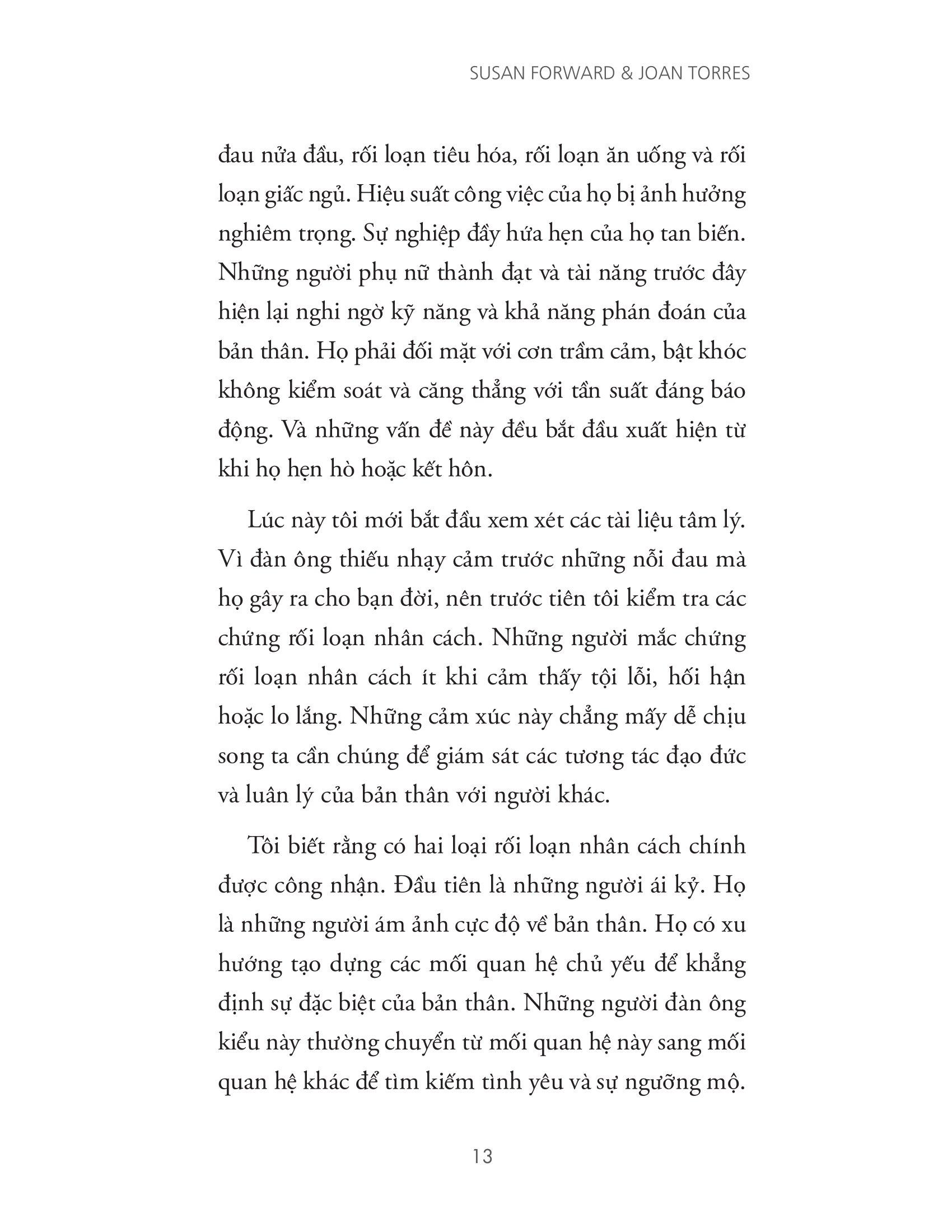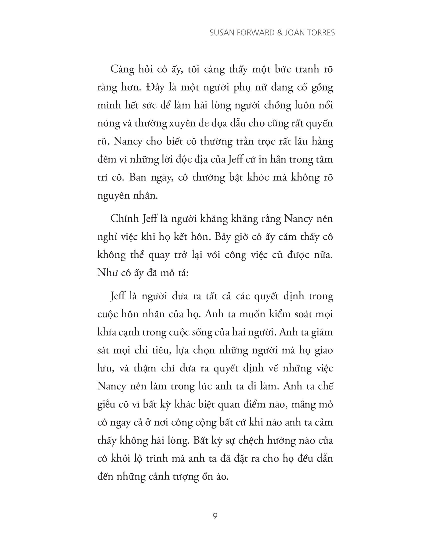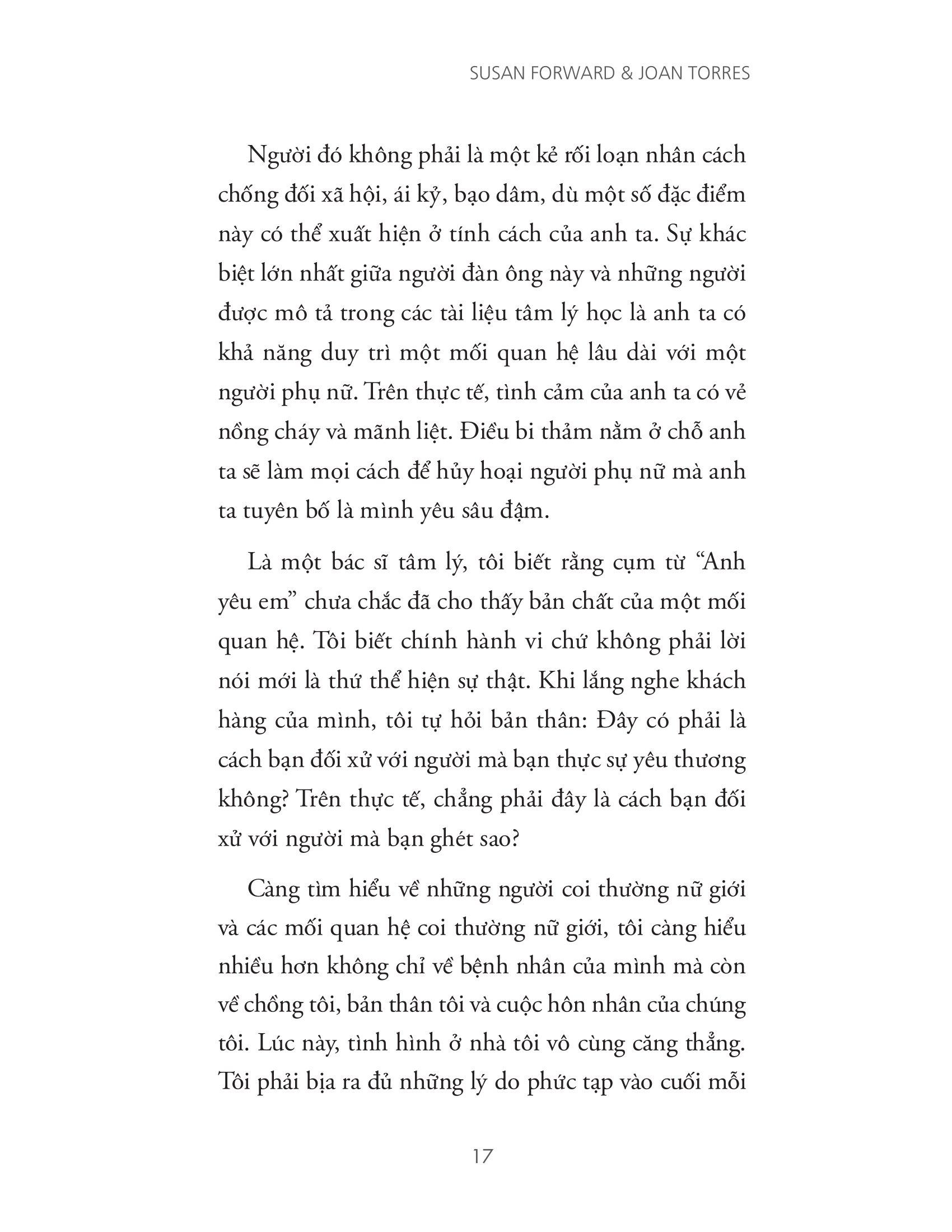 Nếu câu trả lời của bạn là có, thì Thao túng đàn ông bằng mắt, thao túng đàn bà bằng tai là cuốn sách bạn nên đọc. Bằng nhiều năm kinh nghiệm tư vấn tâm lý, tác giả Susan Forward sẽ đưa ra những ví dụ vô cùng chi tiết, các lời giải thích rõ ràng và nhiều bài tập để giúp bạn nhận ra bản chất thật của mối quan hệ, xây dựng góc nhìn mới về bản thân, từ đó thay đổi và chữa lành những tổn thương bạn đã phải chịu đựng.