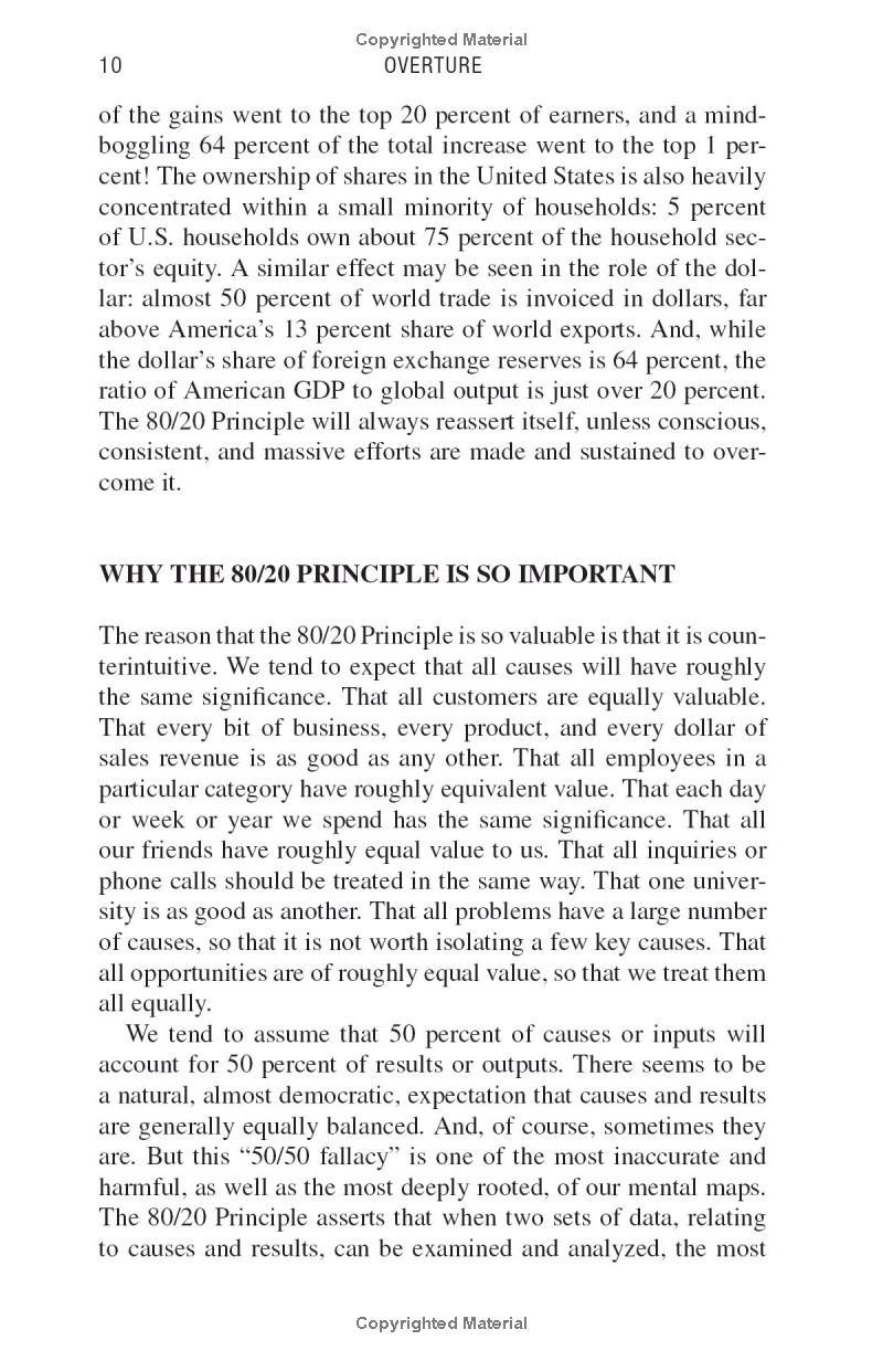 How anyone can be more effective with less effort by learning how to identify and leverage the 80/20 principle--the well-known, unpublicized secret that 80 percent of all our results in business and in life stem from a mere 20 percent of our efforts.