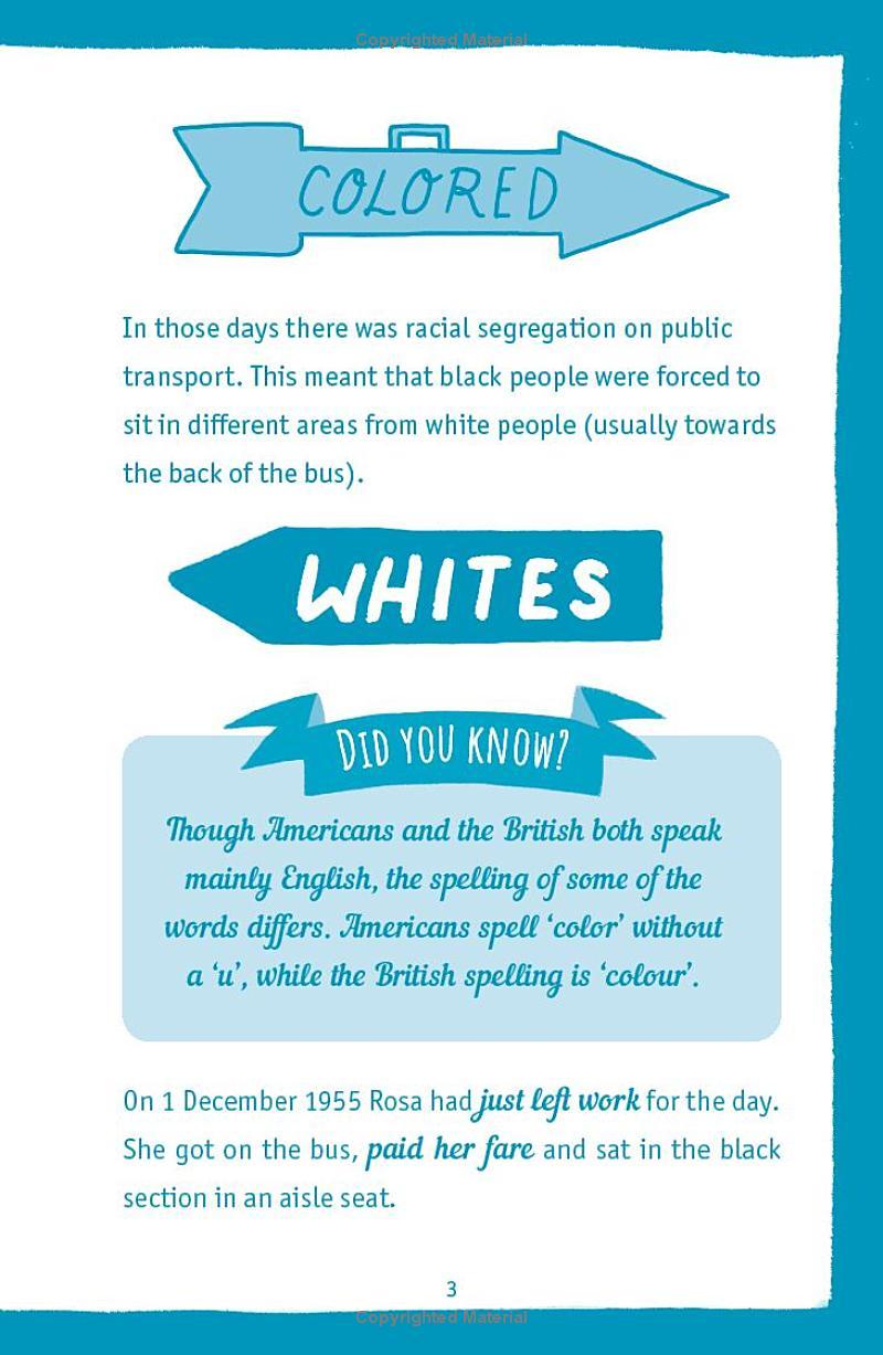 Rosa Parks, the woman known for refusing to give up her seat on the bus, triggered a great shift in the fight for civil rights. Raised in Alabama, Rosa Parks knew all about the racism of her society from an early age. Discover how she became the brilliant activist we know today, in this beautifully illustrated book with real-life stories, timelines and facts to bring her extraordinary story to life.