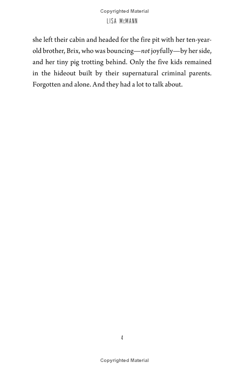 Left behind to fend for themselves are the criminals’ five children, each with superpowers of their own: Birdie can communicate with animals. Brix has athletic abilities and can heal quickly. Tenner can swim like a fish and can see in the dark and hear from a distance. Seven’s skin camouflages to match whatever is around him. Cabot hasn’t shown signs of any unusual power—yet.