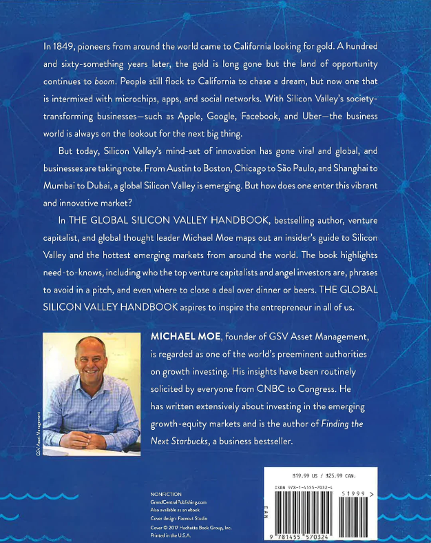 In The Global Silicon Valley Handbook, bestselling author, venture capitalist, and global thought leader, Michael Moe, maps out an insider's guide to Silicon Valley and the hottest emerging markets from around the world. The book highlights need-to-knows, including who the top VCs and angel investors are, phrases to avoid in a pitch, and even where to close a deal over dinner or beers.