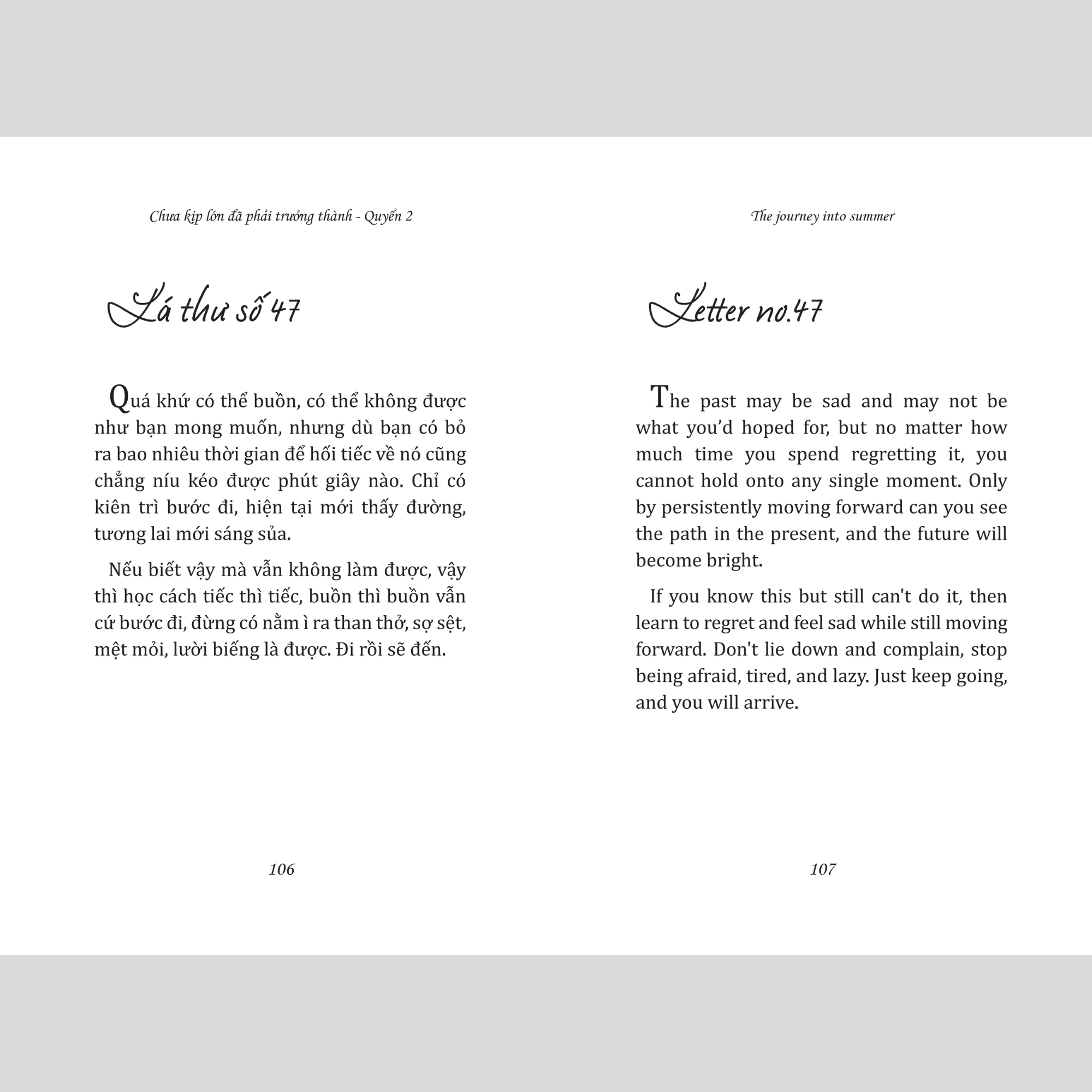 “The journey into summer - Chưa kịp lớn đã phải trưởng thành quyển 2” - Cuốn sách song ngữ Việt Anh vừa giúp bạn học ngoại ngữ vừa vỗ về những năm tháng tuổi trẻ chênh vênh mơ hồ.