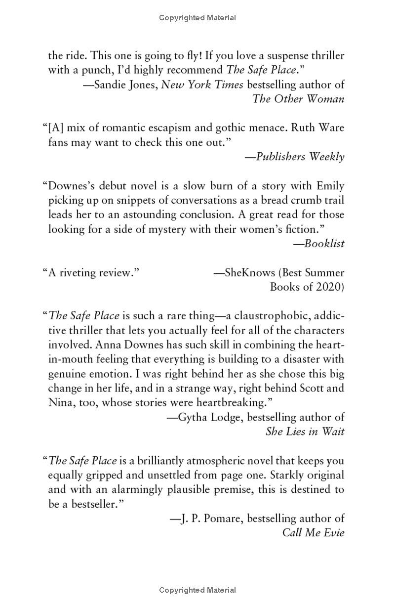 Superbly tense and oozing with atmosphere, Anna Downes's debut, The Safe Place, is the perfect summer suspense, with the modern gothic feel of Ruth Ware and the morally complex family dynamics of Lisa Jewell.