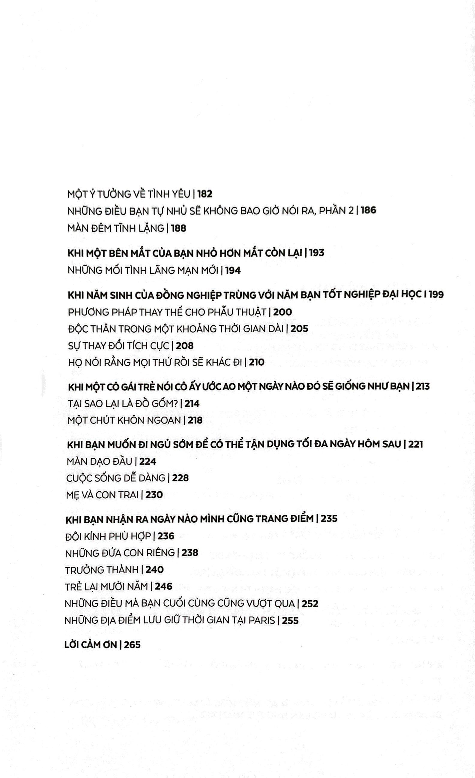Các tác giả Sống như người Paris đã trở lại với những lời khuyên cho phụ nữ ở ngưỡng cửa tuổi bốn mươi. Vẫn sắc sảo, duyên dáng và hài hước, Caroline de Maigret và Sophie Mas sẽ làm bạn thích thú với cách họ đề cập đến sắc đẹp, tình yêu, sự quyến rũ cũng như lối sống, công việc và gia đình. Thông qua những mẩu truyện ngắn thú vị, những khoảnh khắc từ bình dị đến kỳ dị của người phụ nữ trong cuộc sống hằng ngày có thể khiến độc giả bật cười sảng khoái và xuýt xoa công nhận “thêm tuổi thêm duyên".