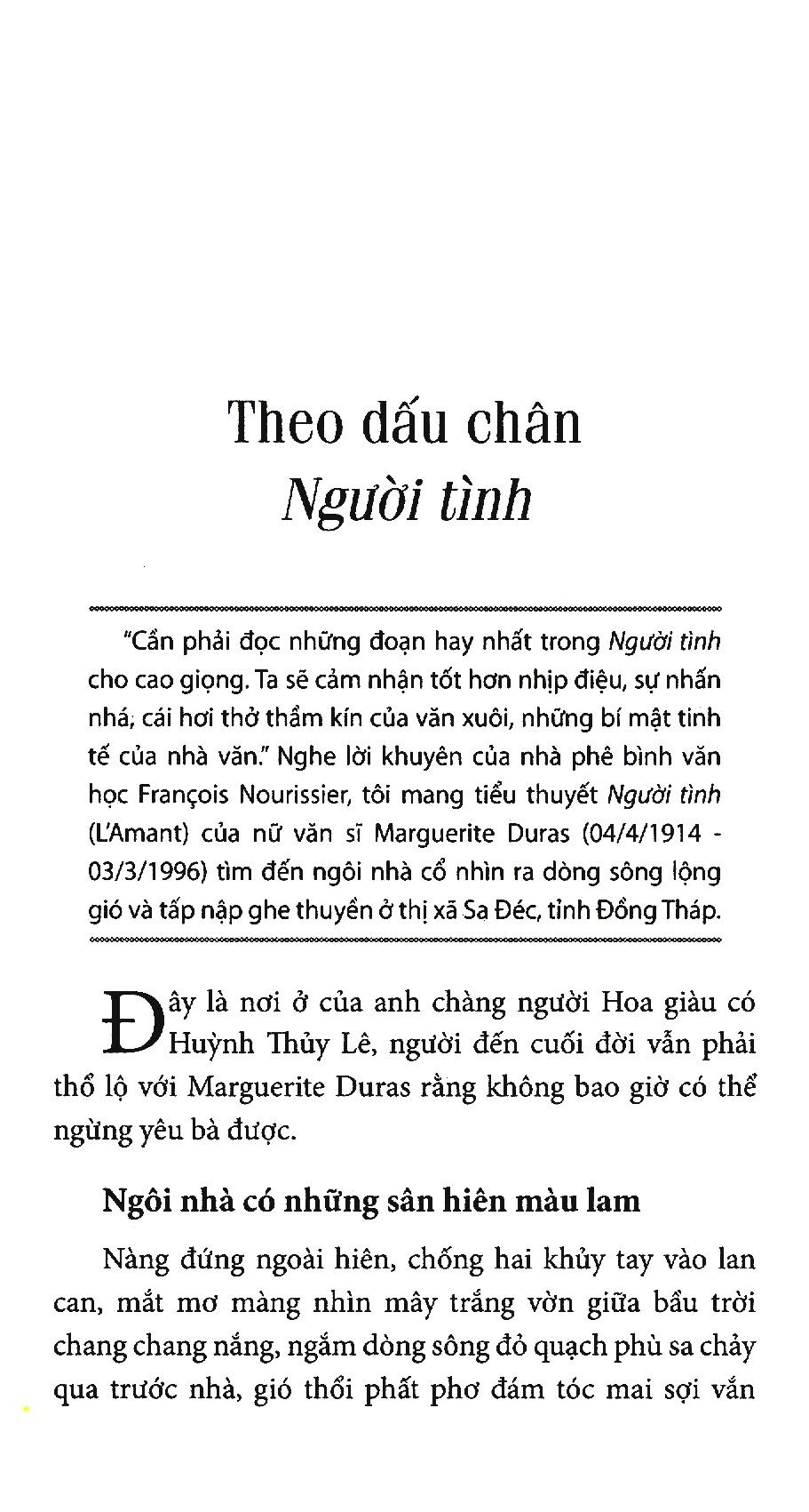 Với mong muốn mang đến cho người đọc những hiểu biết thú vị về thiên nhiên, văn hóa, con người trên mảnh đất hình chữ S này, nhà báo Đỗ Quang Tuấn Hoàng với lợi thế là một người đi nhiều, trải nghiệm nhiều, đã tập hợp những ghi chép trong mỗi hành trình đến các vùng miền trên cả nước trong "Theo dấu chân Người tình". Có những nơi bạn đã từng đến, nhưng dưới ngòi bút của tác giả, bạn sẽ thấy những điều mới mẻ, những điều mình chưa từng trải nghiệm.