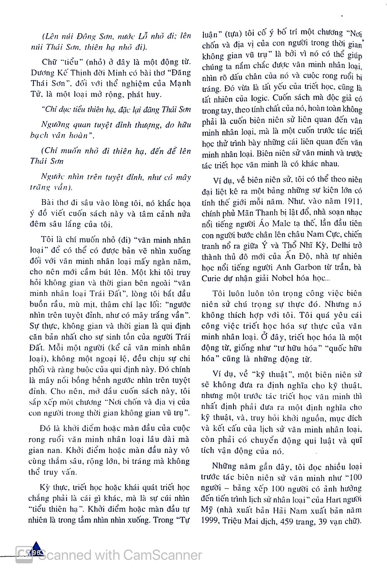 Cuốn sách “Theo dòng văn minh nhân loại”(*) thâm nhập vào hai thế giới mà tác giả gọi là “cái sự thực cứng” và “cái nguyên lý mềm”. Tức, hai mặt để thúc đẩy văn minh nhân loại là: văn khoa (khoa học xã hội nhân văn) và lý công khoa (khoa học tự nhiên công nghệ). Điểm đặc biệt (hấp dẫn) của cuốn sách là tác giả không “làm” lịch sử văn minh nhân loại mà cùng đi, cùng nhìn, cùng xới lật, cùng thẩm thấu… tiến trình phát triển của văn minh nhân loại.