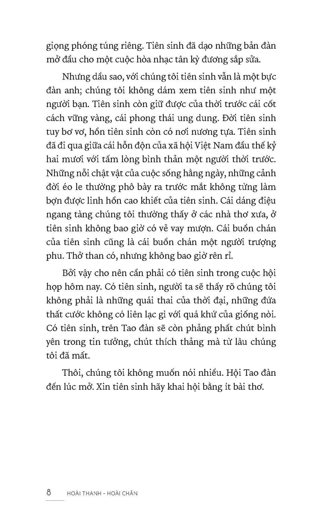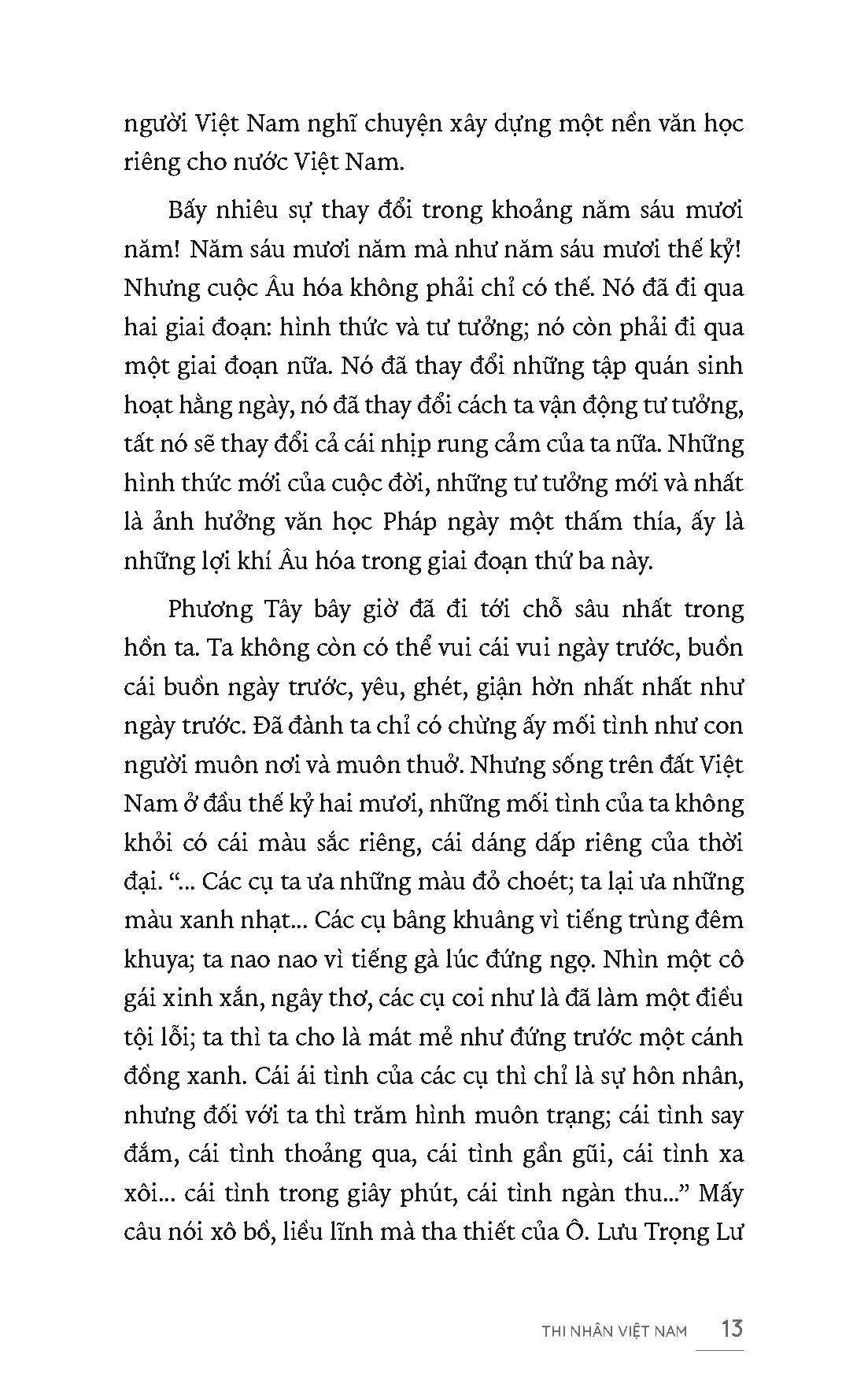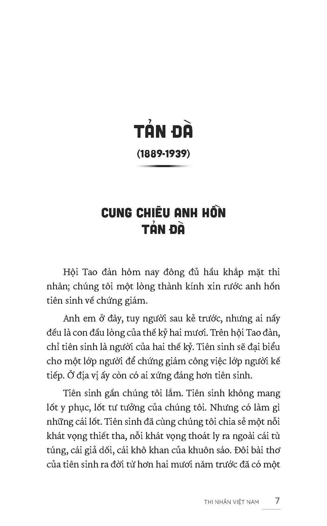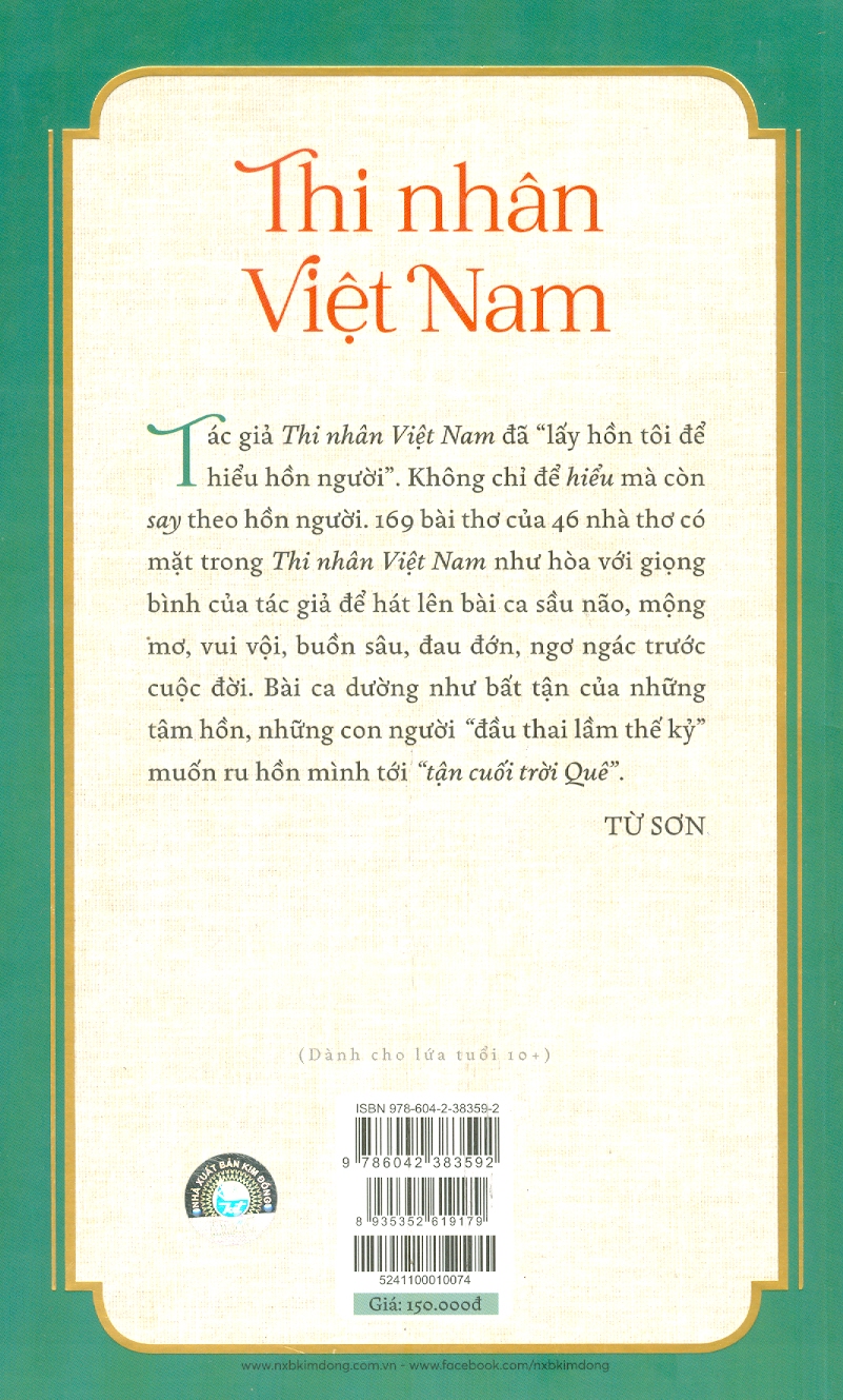 Mua tại Tiktok“Tác giả “Thi nhân Việt Nam” đã “lấy hồn tôi để hiểu hồn người”. Không chỉ để hiểu mà còn say theo hồn người. 169 bài thơ của 46 nhà thơ có mặt trong Thi nhân Việt Nam như hòa với giọng bình của tác giả để hát lên bài ca sầu não, mộng mơ, vui vội, buồn sâu, đau đớn, ngơ ngác trước cuộc đời. Bài ca dường như bất tận của những tâm hồn, những con người “đầu thai lầm thế kỷ” muốn ru hồn mình tới “tận cuối trời Quê”.” - TỪ SƠN