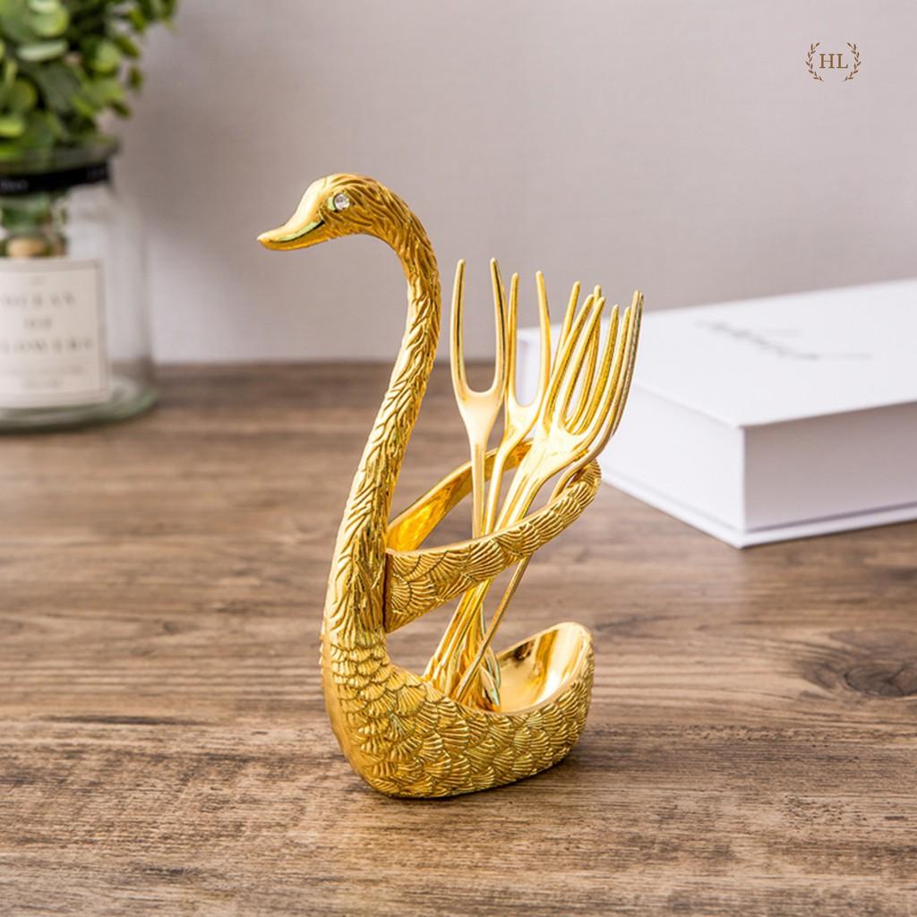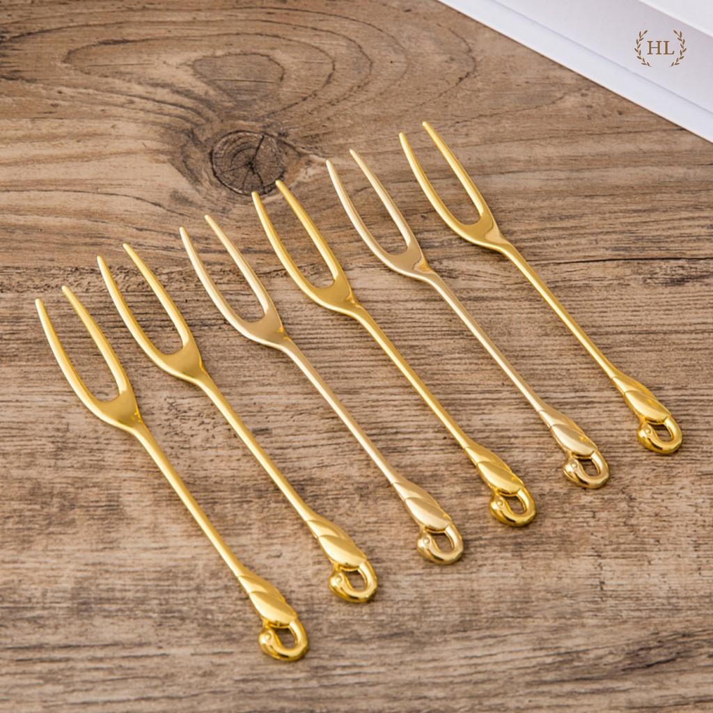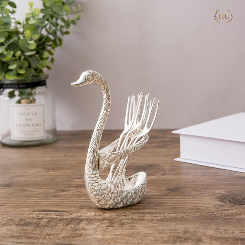 Bộ dĩa ăn hoa quả inox cao cấp đế thiên nga nghệ thuật sang trọng, nĩa ăn trái cây kháng khuẩn HADU