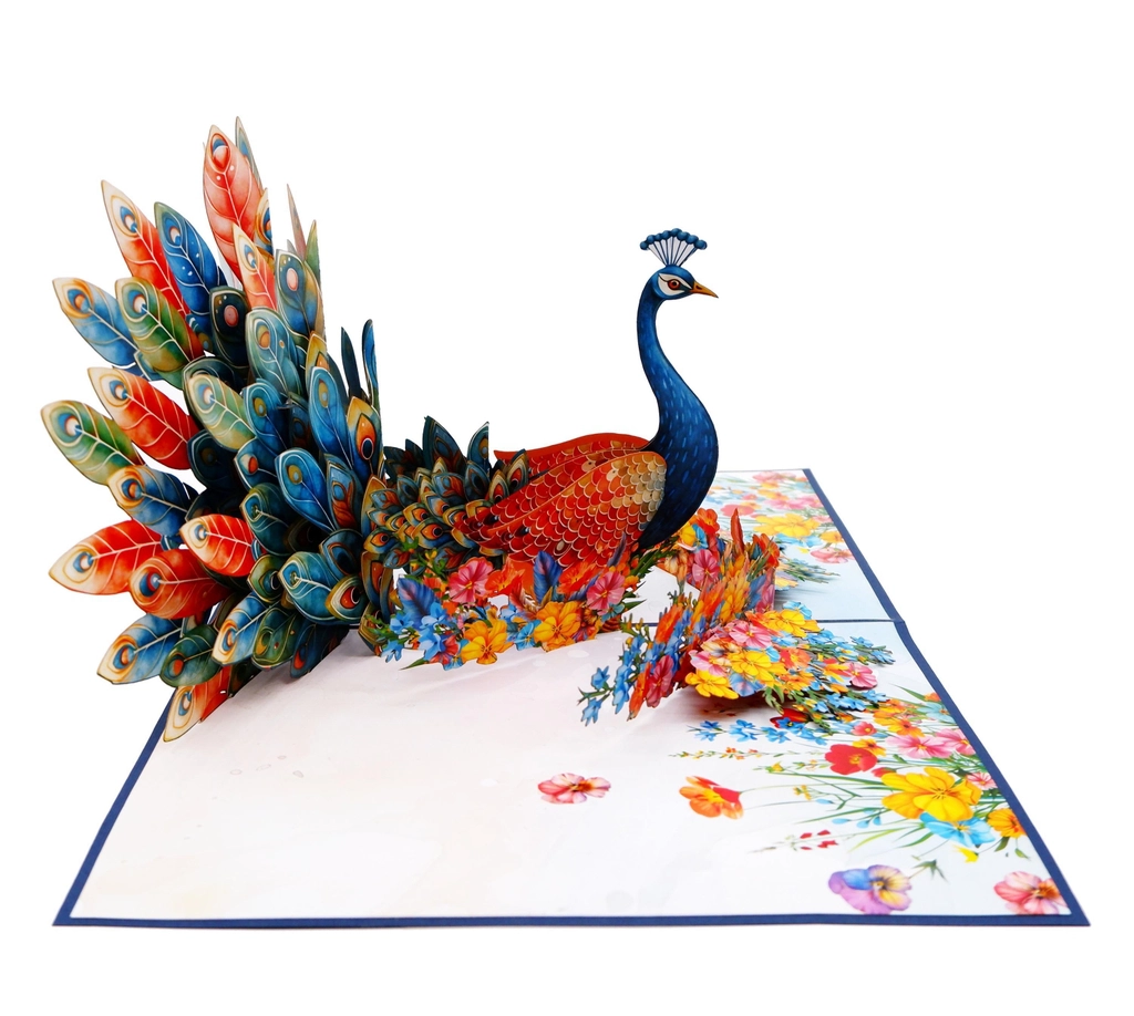 Tặng món quà đẳng cấp và đầy bất ngờ với thiệp 3D chim công xòe đuôi rực rỡ – biểu tượng của sự may mắn, thịnh vượng và vẻ đẹp kiêu sa. Khi mở ra,