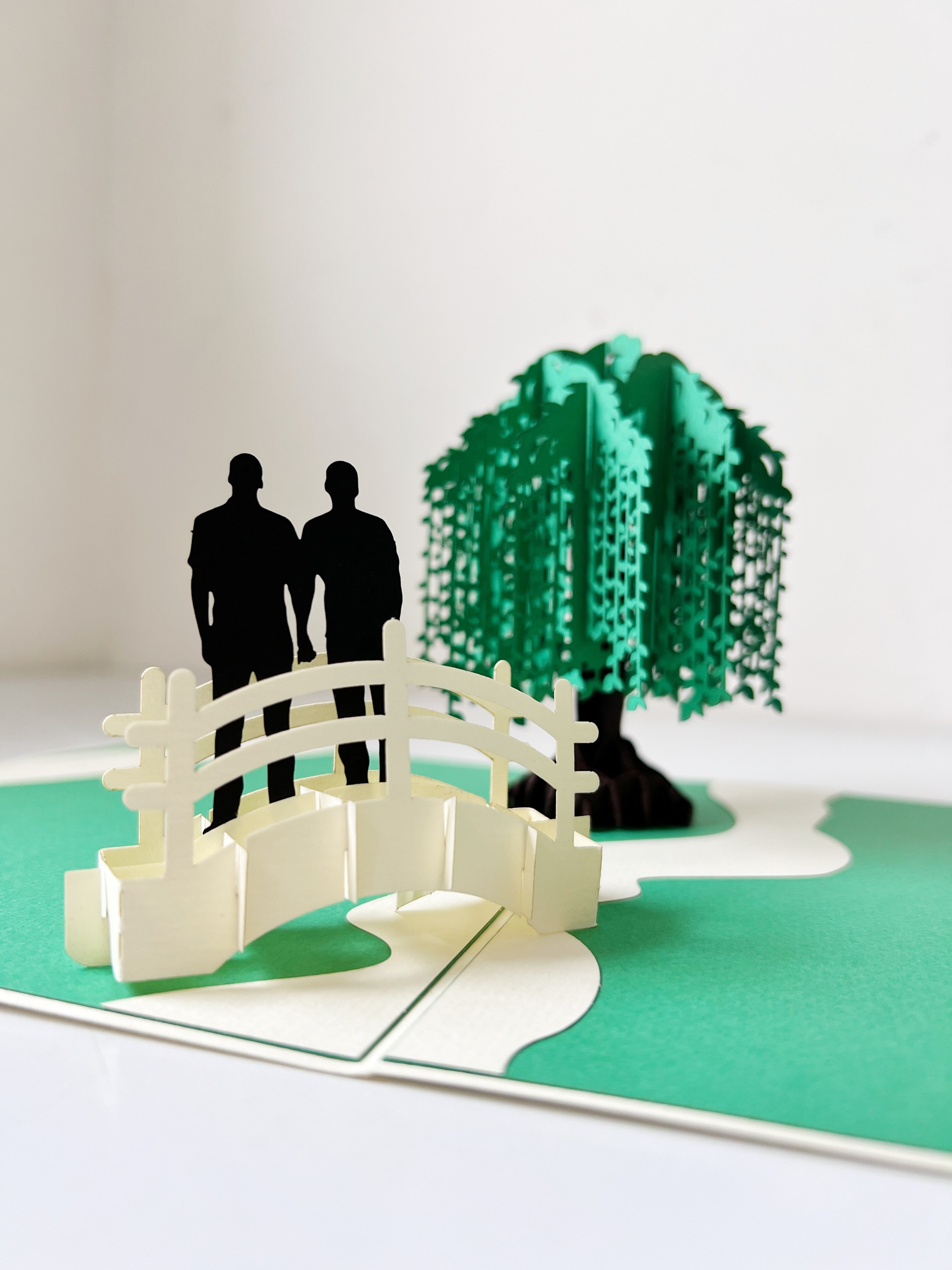 Thể hiện sự tự do và tình yêu chân thành với thiệp 3D Pop Up cặp đôi LGBT. Khi mở ra, hình ảnh hai người nắm tay nhau cùng đi trên cây cầu nhỏ