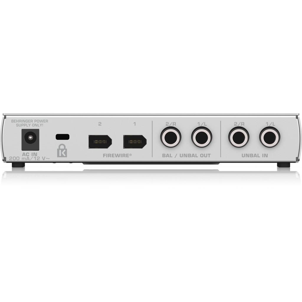 Trên bảng điều khiển phía sau của FCA202, bạn sẽ tìm thấy hai ổ cắm FireWire, một cho máy tính của bạn, một cho ổ đĩa ngoài tùy chọn. Đầu vào là giắc cắm ¼ "không cân bằng chấp nhận nhiều loại thiết bị cấp dòng. Đầu ra chấp nhận cả kết nối ¼" cân bằng và không cân bằng. Giắc cắm tai nghe được đặt ở vị trí thuận tiện ở mặt trước, cùng với bộ điều chỉnh âm lượng chuyên dụng của riêng nó.