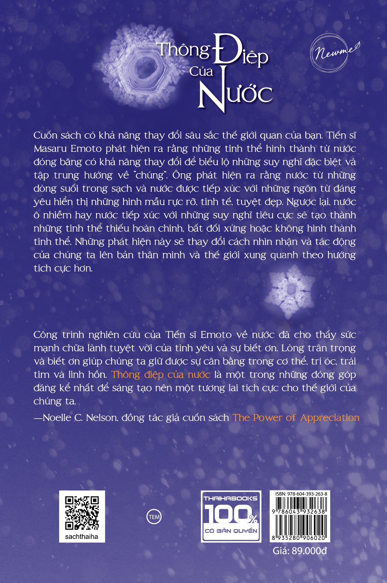 Cuốn sách là quá trình tiến hành nghiên cứu, đo lường dao động sóng trong nước, tìm hiểu về những tinh thể và tác giả đã khám phá ra rằng nước tự thể hiện nó theo muôn vàn cách khác nhau. Qua những bức ảnh chụp các tinh thể bổ sung cho thấy rất nhiều điều kỳ thú. Trái ngược với nước máy, nước tự nhiên hiển thị ra một chuỗi những tinh thể tuyệt đẹp, các tinh thể này còn tuyệt vời hơn khi tiếp xúc với những bản nhạc hay hoặc thể hiện của chúng khi tiếp cận với các từ như “cám ơn”, “đồ ngốc”. Những tinh thể chứa đựng nhiều bài học liên quan đến cách mà chúng ta nên – và PHẢI – sống cuộc đời mình.