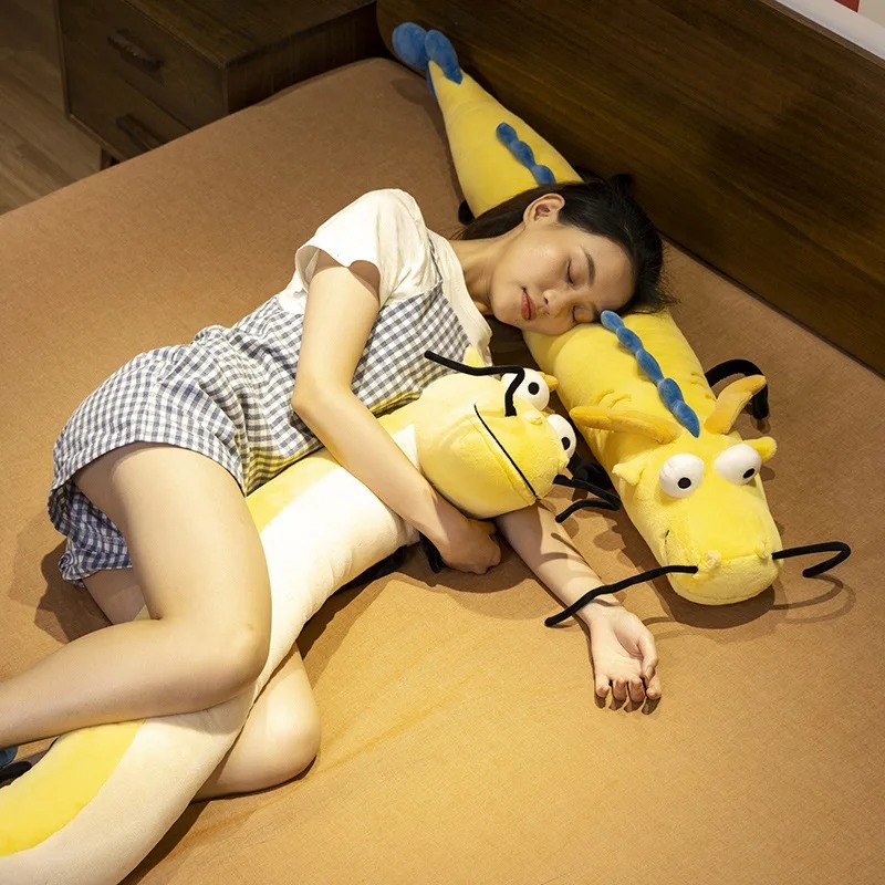 ✨Thú nhồi bông con rồng vô tri có râu - Size từ 70cm đến 115cm - Quà tặng gấu bông con rồng nằm cong cong êm mịn.