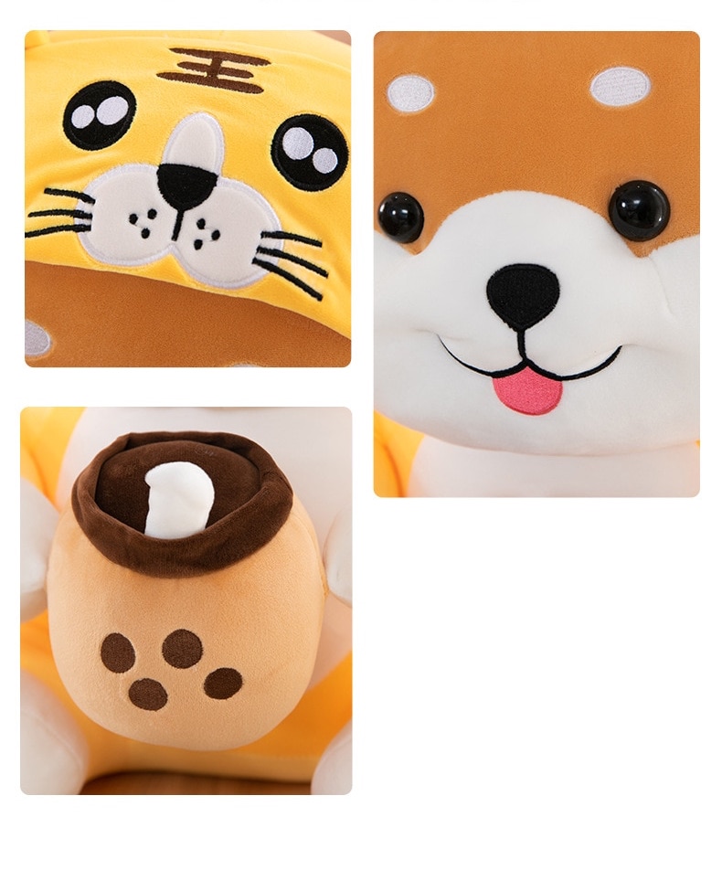 ✨Thú nhồi bông shiba cosplay hổ ôm trà sữa - Size từ 40cm đến 55cm - Quà tặng shiba ôm trà sữa nhồi bông êm mịn dễ thương - Gối ôm mềm mịn cho bé