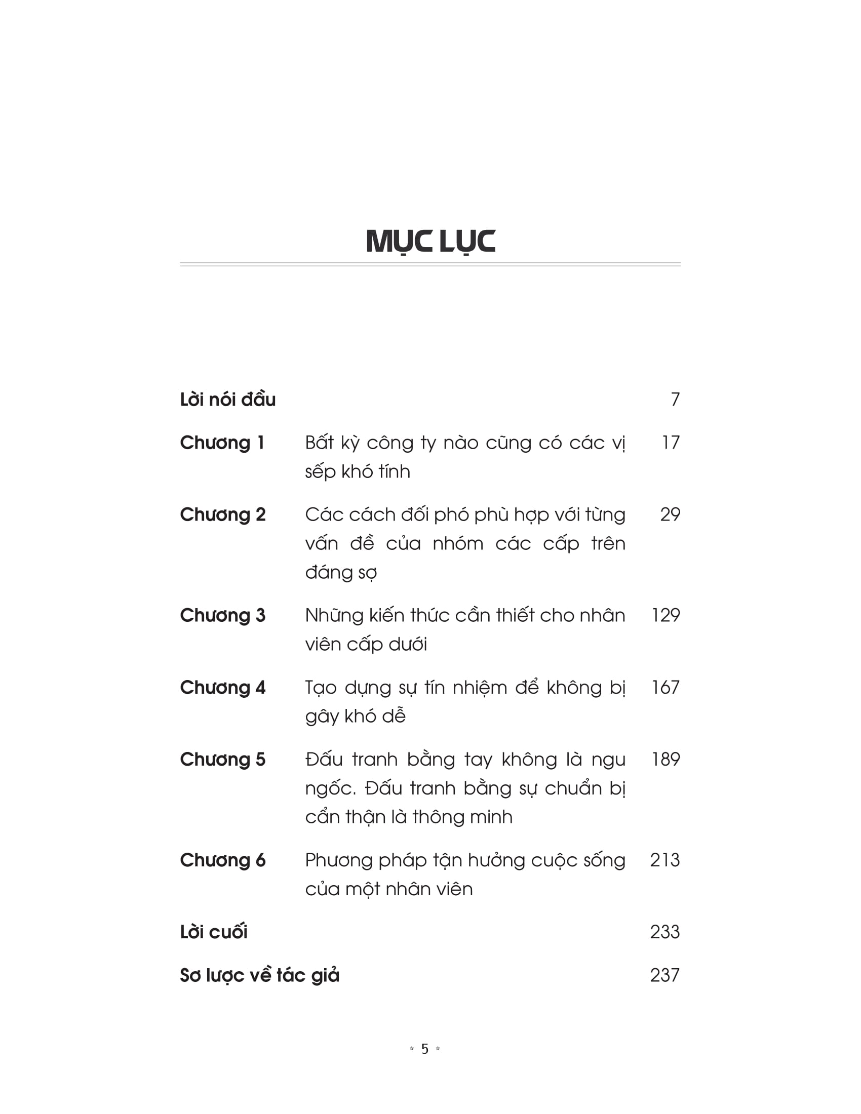 Bên cạnh đó, tác giả cũng hướng dẫn các nhân viên cấp dưới các kỹ năng để nâng cao năng lực bản thân, chủ động trong công việc, tạo dựng được sự tín nhiệm và ủng hộ từ đồng nghiệp và xây dựng mối quan hệ làm việc hiệu quả với các cấp trên và tận hưởng công việc mỗi ngày của mình.