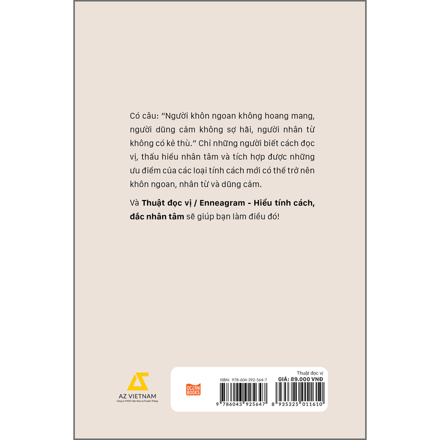 Với Thuật đọc vị - Enneagram (Hiểu tính cách, đắc nhân tâm), độc giả sẽ tìm thấy mối liên hệ giữa các con số biểu hiện cho từng loại tích cách, từ đó hiểu rõ về cá tính, điểm mạnh, điểm yếu của người khác và chính mình, nhằm khai thác toàn bộ tiềm năng của bản thân cũng như tận dụng sự hiểu biết để duy trì các mối quan hệ xã hội.