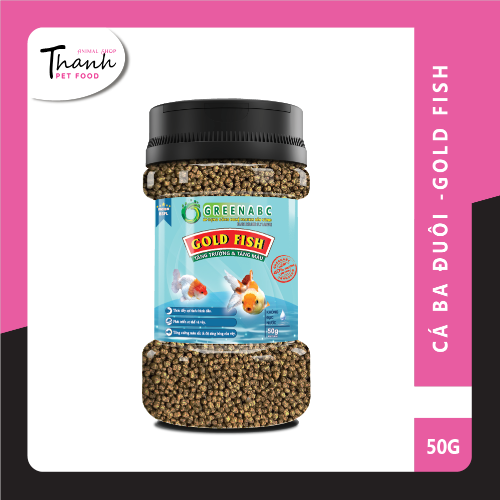 GREENABC - THỨC ĂN CÁ 3 ĐUÔI - HÀM LƯỢNG PROTEIN > 40%GREENABC là thức cao cấp dành cho các loại cá 3 ĐUÔI như: Ranchu, Đầu Lân (Oranda), Lưu Kim Gù (Ryukin), Lan Thọ (Lionhead), Mắt Lồi (Telesco...