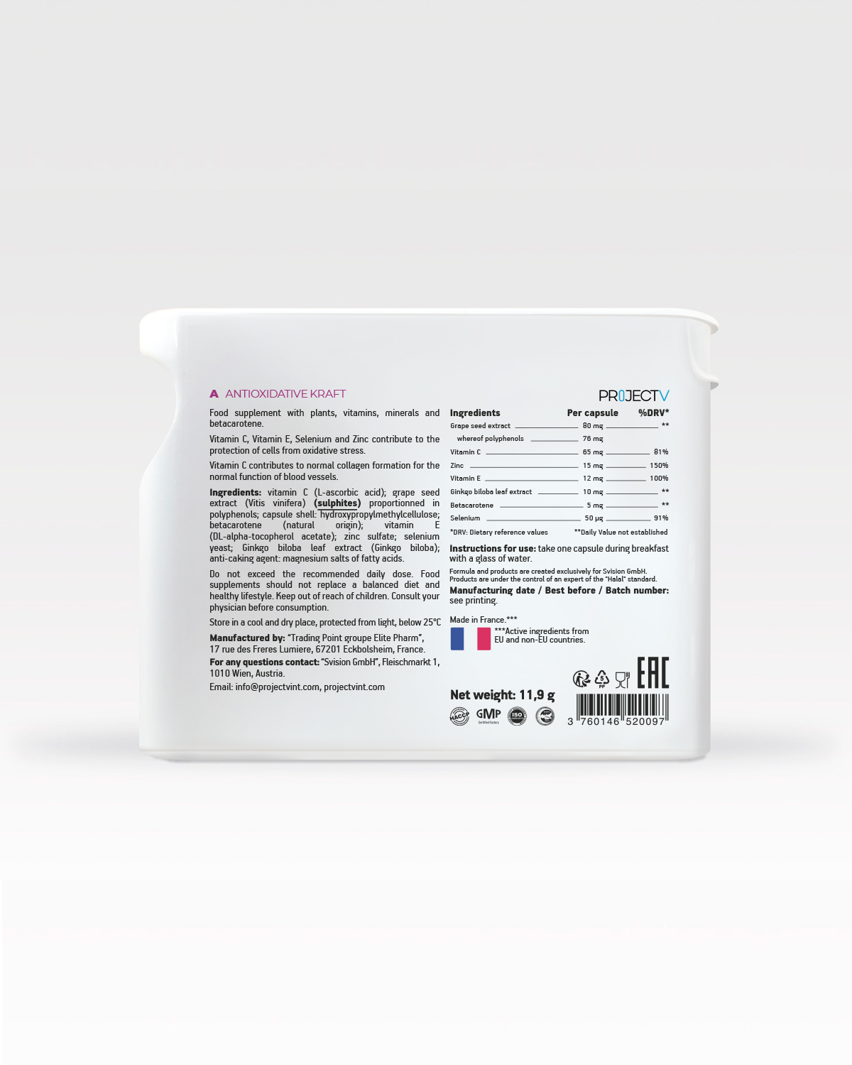 PROJECT V Classic Hit - A Food Supplement - Antioxidant Power - Box of 30 Capsules - Made in France, Genuine Product