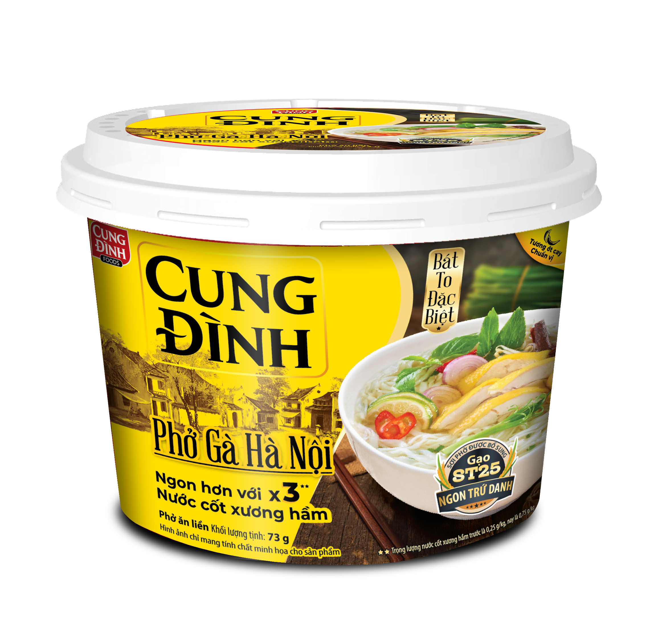 - Thùng 12 Hộp Phở Gà Hà Nội Cung Đình (73g/ Hộp) với nước cốt xương hầm và tương ớt chuẩn vị Hà Thành, chỉ cần vài phút cho khâu chuẩn bị và chế biến