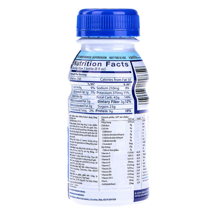 - Thùng 24 Chai Sữa Nước Abbott Ensure Liquid Vanilla (237ml x 24) là sản phẩm dinh dưỡng đầy đủ và cân đối cho người lớn, hỗ trợ tiêu hóa, thích hợp để thay thế