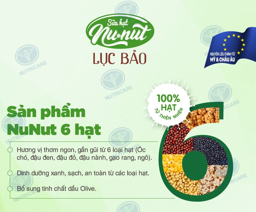 Mua tại TiktokSữa Nunut 6 hạt Ngọc Lục Bảo là sản phẩm sinh dưỡng cho cả gia đình (trẻ em >4 tuổi) đến từ 6 loại hạt cao cấp, nhập khẩu từ Châu Âu và được sản xuất từ công ty Nutricare Việt Nam
