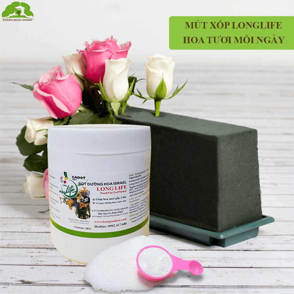 SHOP HOA BẢO QUẢN HOA LÂU TÀN VÀ "HAN CHẾ" THAY HOA ĐỊNH KỲ BẰNG DUNG DỊCH BỘT CẮM HOA LÂU TÀN LONGLIFE SG (HỘP 1KG) NHẬP KHẨU ISRAEL - Trong ngành hoa, Shop hoa