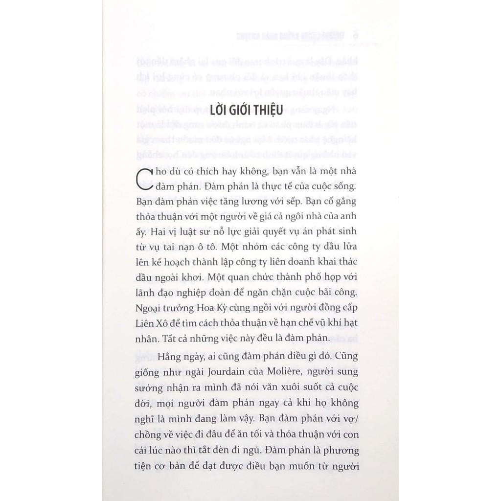 Thương lượng không nhân nhượng một chiến lược – đã được chứng minh – để đạt được các thỏa thuận, có thể chấp nhận lẫn nhau trong mọi loại xung đột. Được cập nhật và sửa đổi kỹ lưỡng, cuốn sách cung cấp cho độc giả một phương pháp đàm phán phổ biến, để đàm phán các tranh chấp cá nhân và chuyên nghiệp mà không bị tức giận hoặc yếu thế.