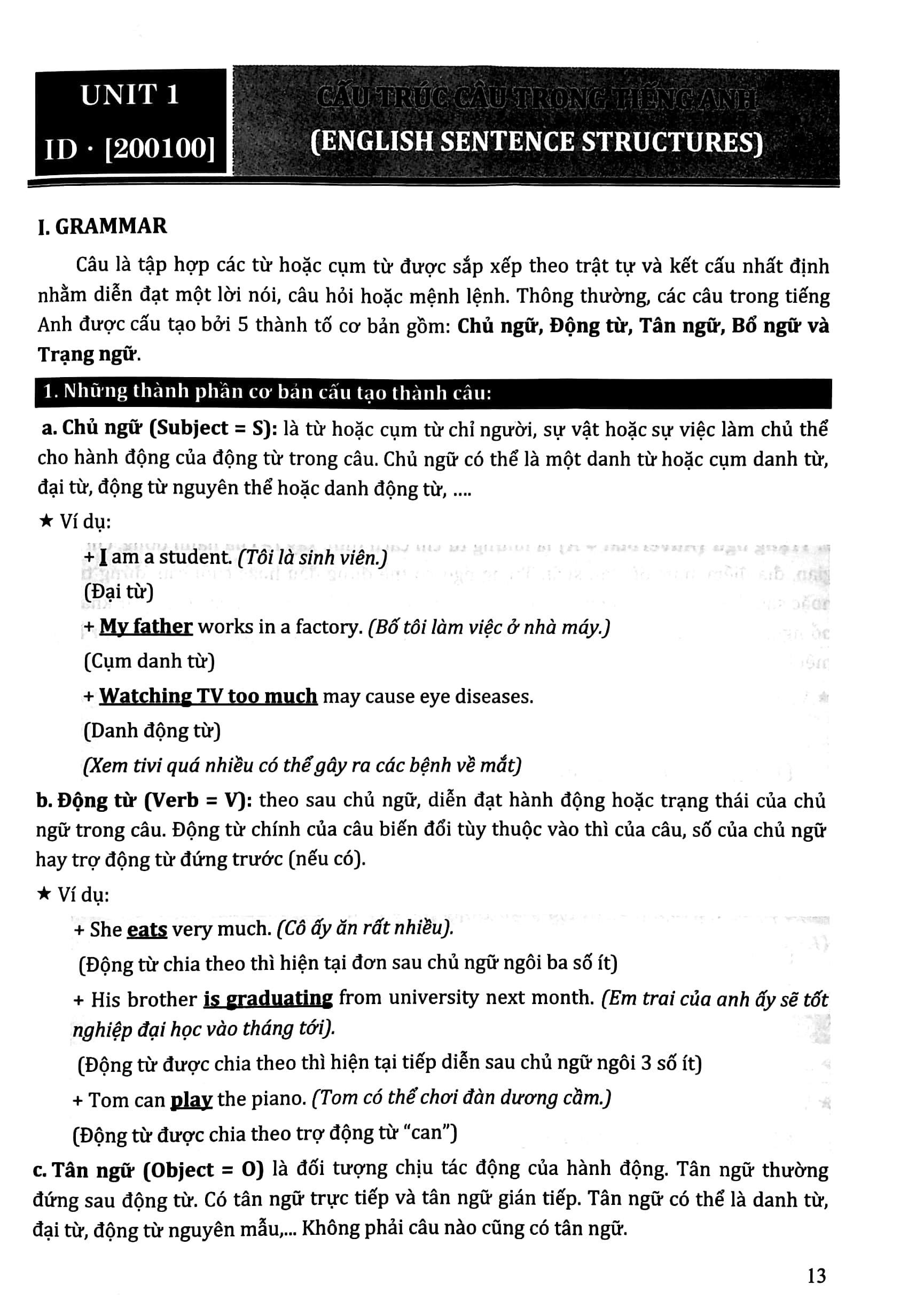 • Sách bao gồm 30 units, trong đó mỗi bài lại được chia thành các phần: Nghe - Nói - Đọc - Viết và Ngữ Pháp.