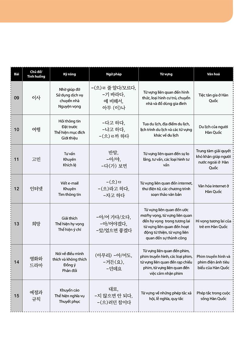 - Nội dung giáo trình tiếng Hàn tổng hợp Trung cấp 3