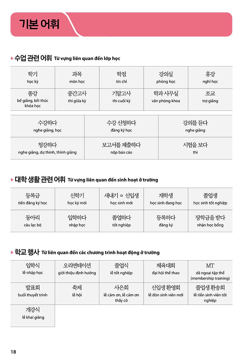 Nội dung trong mỗi bài trong quyển tiếng hàn trung cấp 3 có các biểu hiện thông dụng trong thực tiễn giúp người học dễ dàng ứng dụng trong cuộc sống hàng ngày.