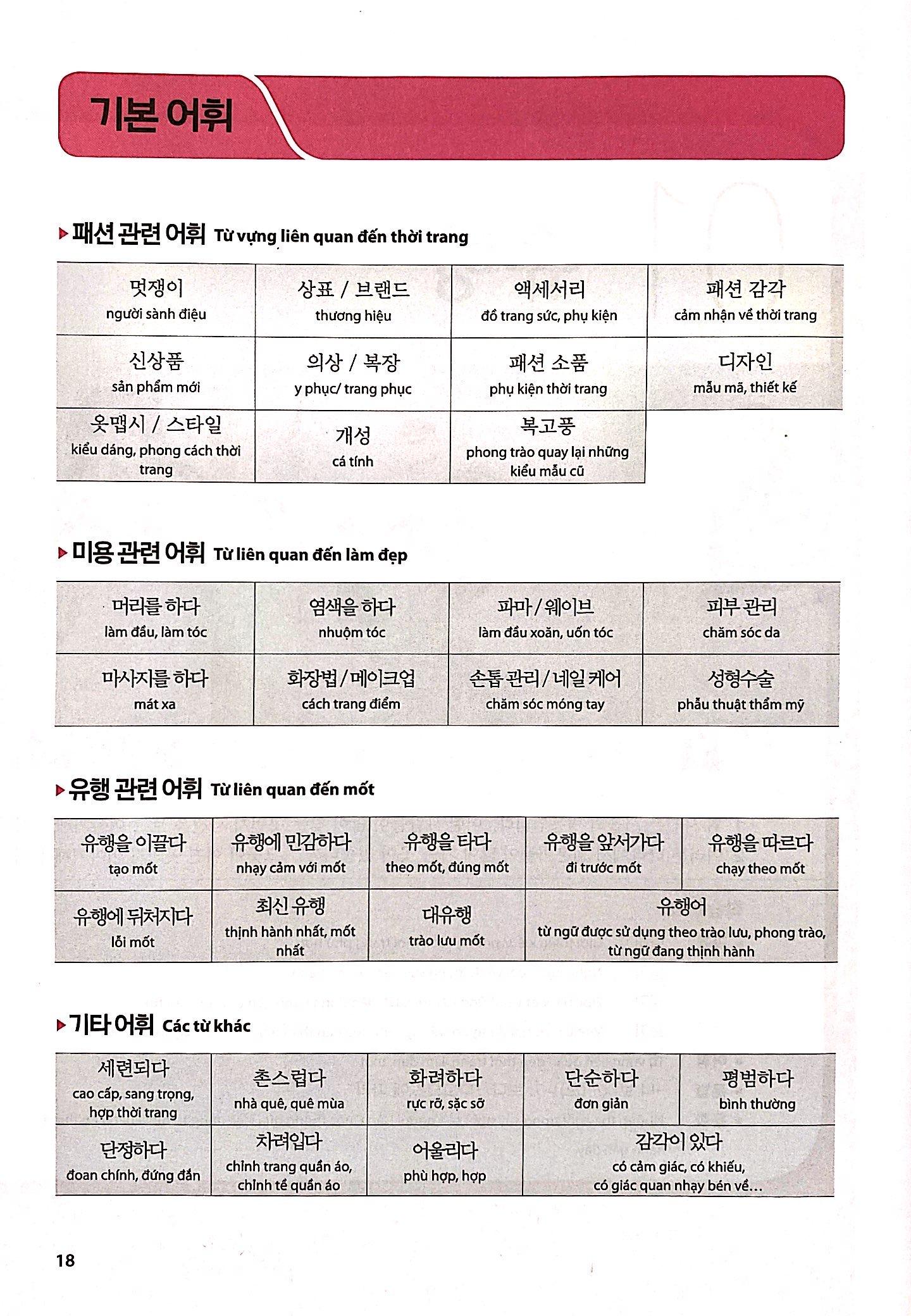 Từ Vựng Tiếng Hàn Tổng Hợp Trung Cấp 4 Bài 1: 유행 Thời trang, mốt