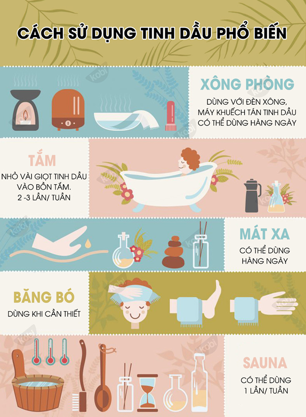 - Các dấu hiệu nhận biết tinh dầu nguyên chất? Những câu hỏi trên cứ lặp đi lặp lại trong suy nghĩ của bạn và hơn thế, bạn cần có được thông tin đầy đủ và chính xác nhất. Hãy cùng Kobi tìm hiểu bạn nhé! Tinh dầu là gì? Tinh dầu là một dạng chất lỏng chứa các hợp chất thơm dễ bay hơi được chiết xuất bằng cách chưng cất hơi nước hoặc ép lạnh, từ lá cây; thân cây; hoa; vỏ cây; rễ cây; hoặc những bộ phận khác của thực vật (wikipedia). Công dụng chính của tinh dầu? Với lịch sử phát triển hàng ngàn năm, tinh dầu được mệnh danh là báu vật của thiên nhiên, là tủ thuốc của tự nhiên được phát triển thành phương pháp trị liệu, chăm sóc sức khoẻ, làm đẹp trên toàn thế giới. … Một số công dụng chính có thể được liệt kê như sau: