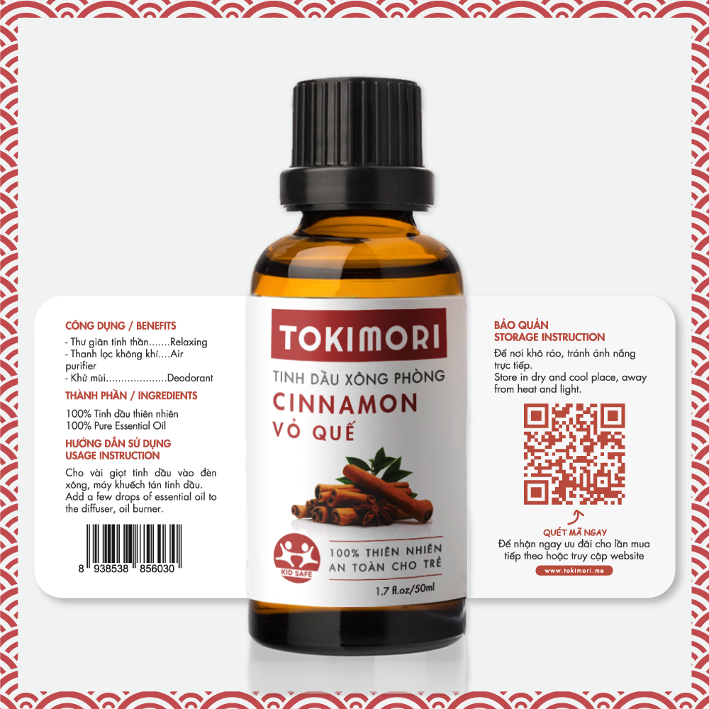 Tinh Dầu Vỏ Quế TOKI MORI Xuất Khẩu Nhật Bản (50ml) Nguyên Chất Thiên Nhiên, Xông Phòng, Khử Mùi, Kháng Khuẩn, Đuổi Muỗi, Ngủ Ngon, Giảm Stress, An Toàn Cho Trẻ.   5 LÝ DO