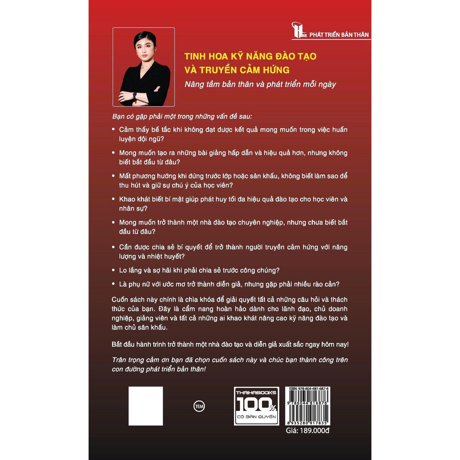 Cuốn sách này sẽ cung cấp cho độc giả các kỹ năng đào tạo và nghệ thuật truyền cảm hứng. Giúp những người đang muốn phát triển bản thân có năng lực thuyết trình và đào tạo, tăng cơ hội trong công việc.