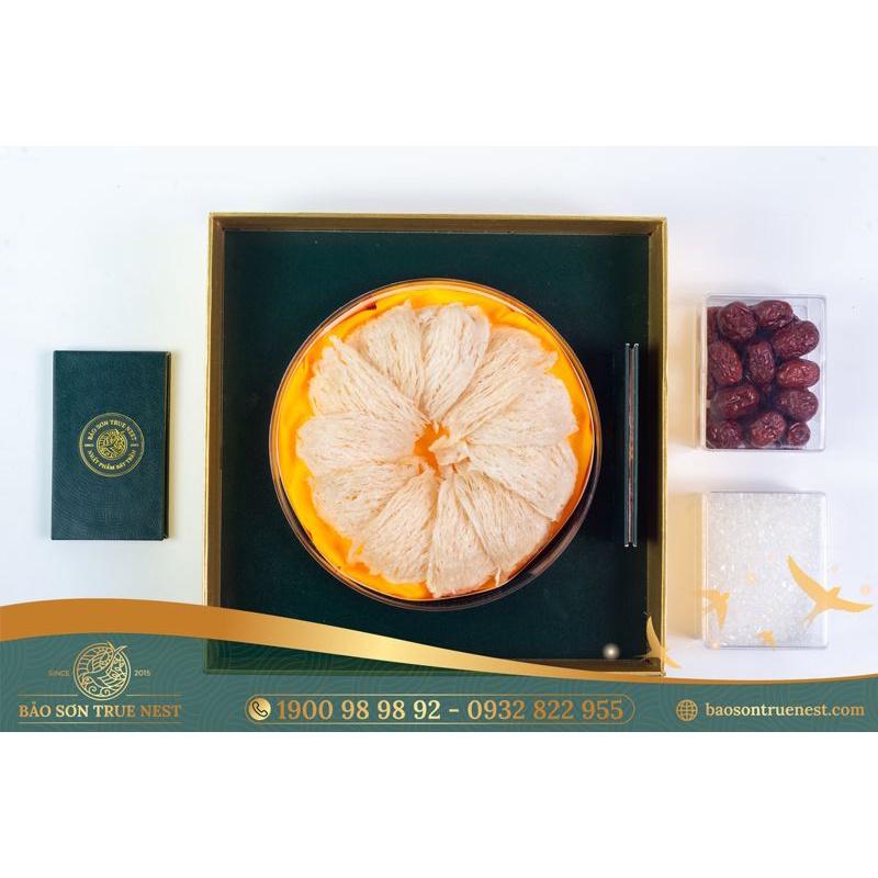 Với sản phẩm tươi sống, trọng lượng thực tế có thể chênh lệch khoảng 10%. BẢO SƠN TRUE NEST - NHẤT PHẨM BÁT TRÂN Sản phẩm : Tổ yến tinh chế vụn tròn - ĐẶC