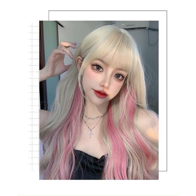✨Tóc giả xoăn vàng light hồng cao cấp