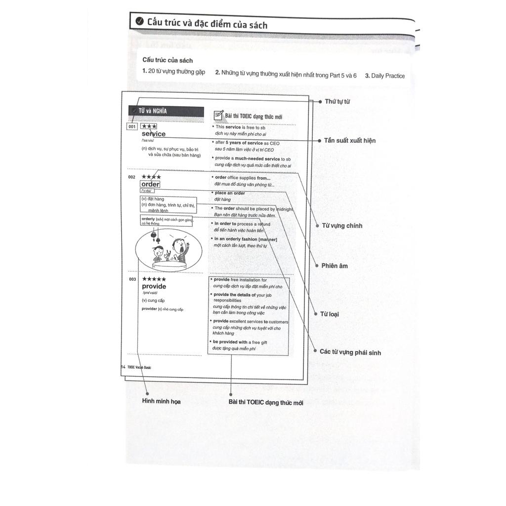 • Cung cấp một khối lượng lớn từ vựng cùng các ví dụ thường gặp trong bài thi TOEIC