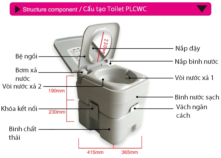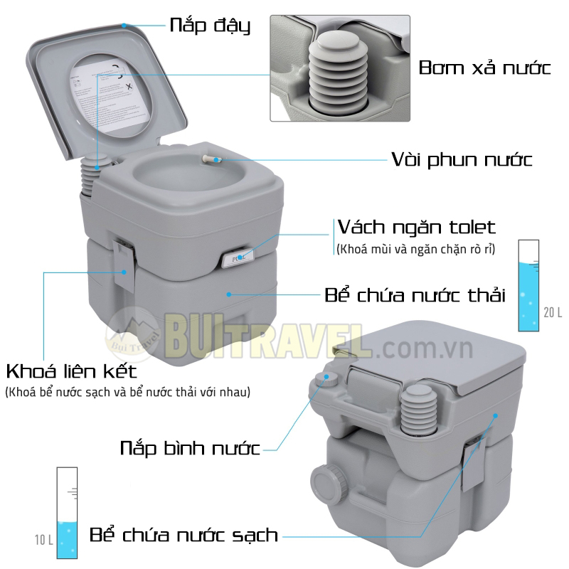 - Có túi đựng đi kèm tiện gọn Tính năng - Nhà vệ sinh cắm trại di động