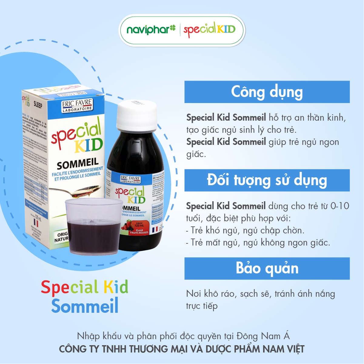 Siro giúp ngủ ngon cho bé, an giấc, giảm giật mình, cân bằng giấc ngủ sinh lý cho trẻ TPBVSK Special Kid Sleep / Special Kid Sommeil 125ml [Nhập khẩu - Pháp] Special Kid là