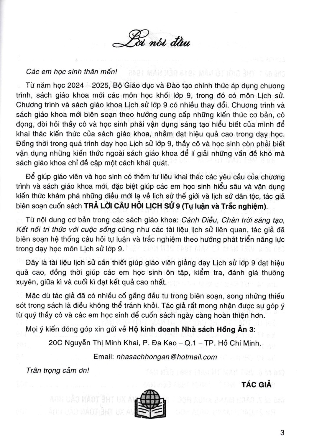 Mua tại TiktokTrả Lời Câu Hỏi Lịch Sử Lớp 9 - Tự Luận & Trắc Nghiệm GIỚI THIỆU SÁCH: Từ năm học 2024 – 2025, Bộ Giáo dục và Đào tạo chính thức áp dụng chương trình, sách giáo khoa mới các môn học khối lớp 9, trong đó có môn Lịch sử. Chương trình và sách giáo khoa Lịch sử lớp 9 có nhiều thay đổi. Chương trình và sách giáo khoa mới biên soạn theo hướng cung cấp những kiến thức cơ bản, cô đọng, đòi hỏi thầy cô và học sinh phải vận dụng sáng tạo hiểu biết của mình để khai thác kiến thức của sách giáo khoa, nhằm đạt hiệu quả cao trong dạy học. Đồng thời trong quá trình dạy học Lịch sử lớp 9, thầy cô và học sinh còn phải biết vận dụng những kiến thức ngoài sách giáo khoa để lí giải những vấn đề khó mà sách giáo khoa chỉ đề cập một cách khái quát. Để giúp giáo viên và học sinh có thêm tư liệu khai thác các yêu cầu của chương trình và sách giáo khoa mới, đặc biệt giúp các em học sinh hiểu sâu và vận dụng kiến thức khám phá những điều mới lạ về lịch sử thế giới và lịch sử dân tộc, tác giả biên soạn cuốn sách Trả Lời Câu Hỏi Lịch Sử Lớp 9 - Tự Luận & Trắc Nghiệm. Từ nội dung cơ bản trong các sách giáo khoa: Cánh Diều, Chân trời sáng tạo, Kết nối tri thức với cuộc sống cũng như các tài liệu lịch sử liên quan, tác giả đã biên soạn hệ thống câu hỏi tự luận và trắc nghiệm theo hướng phát triển năng lực trong dạy học môn Lịch sử lớp 9. Đây là tài liệu lịch sử cần thiết giúp giáo viên giảng dạy Lịch sử lớp 9 đạt hiệu quả cao, đồng thời giúp các em học sinh ôn tập, kiểm tra, đánh giá thường xuyên, giữa kì và cuối kì đạt kết quả cao nhất. Mặc dù tác giả đã có nhiều cố gắng đầu tư trong biên soạn, song những thiếu sót trong sách là điều không thể tránh khỏi. Tác giả rất mong nhận được sự góp ý từ quý thầy cô và các em học sinh để cuốn sách ngày càng hoàn thiện hơn.